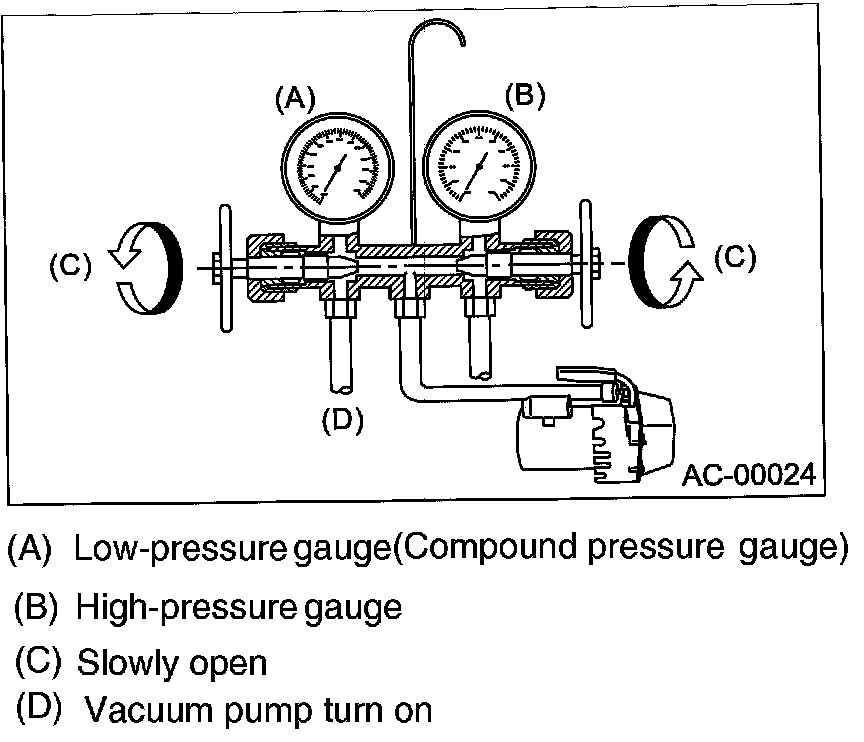 - Before charging the refrigerant, evacuate the system to remove small amounts of moisture remaining in the system.