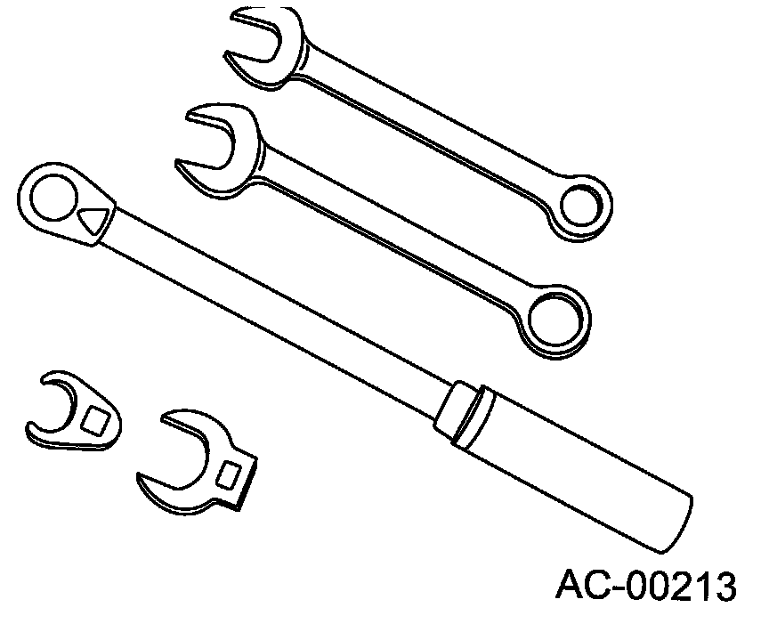 Various WRENCHES will be required to service any A/C system. A 7 to 40 Nm (0.7 to 4.1 kgfm, 5 to 30 ft-lb) torque wrench with various crowfoot wrenches will be needed. Open end or flare nut wrenches will be needed for back-up on the tube and hose fittings.