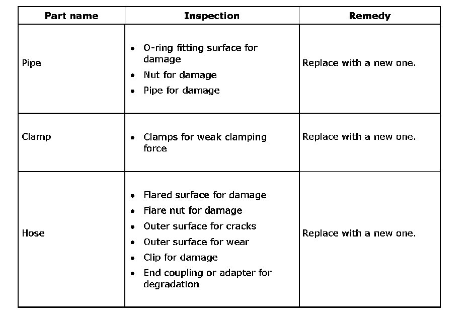 Note: It is likely that although one judges fluid leakage, there is actually no leakage. This is because the fluid spilt during the last maintenance was not completely wiped off. Be sure to wipe off spilt fluid thoroughly after maintenance.