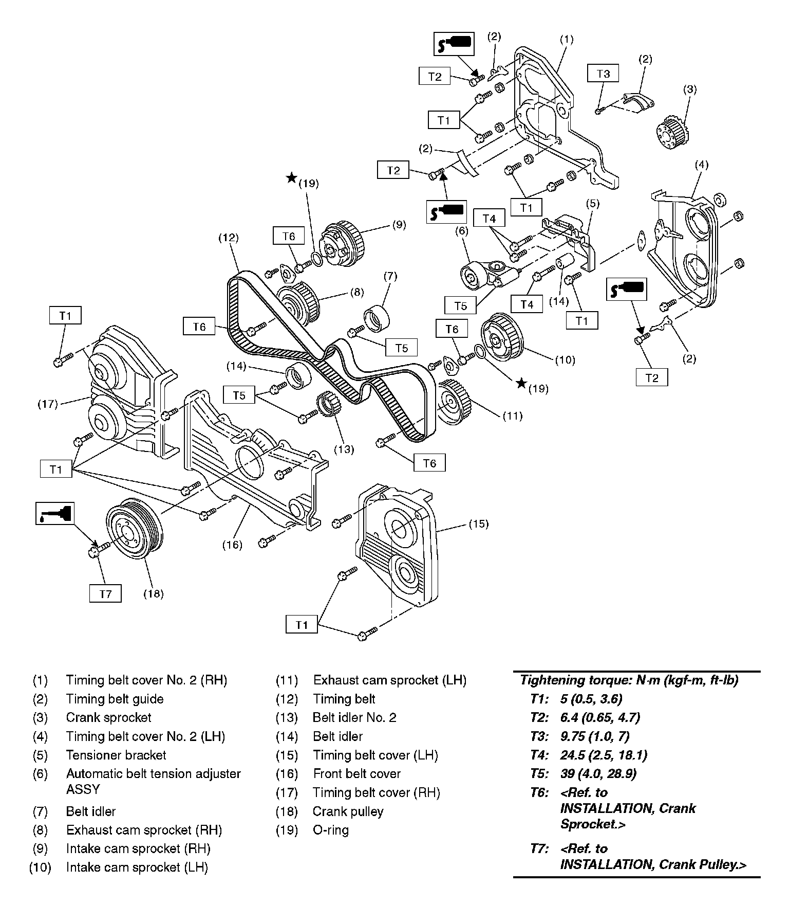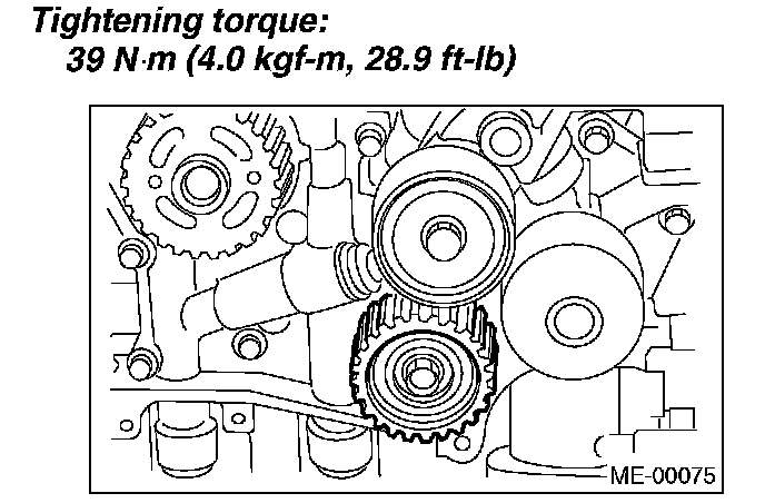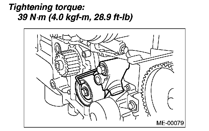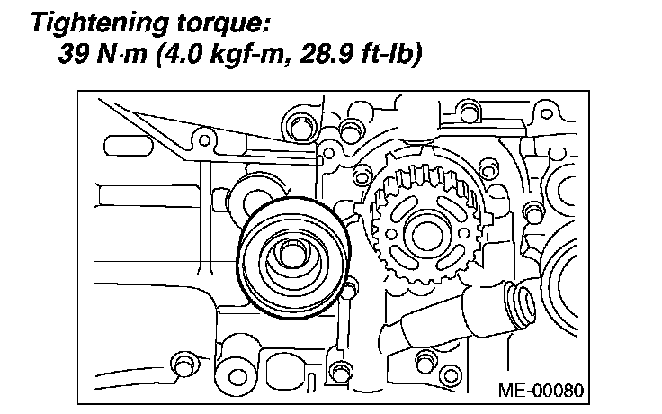 Tightening torque: 39 Nm (4.0 kgf-m, 28.9 ft. lbs.)