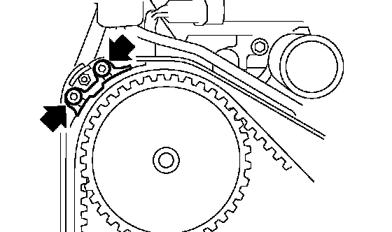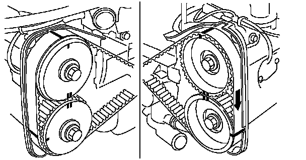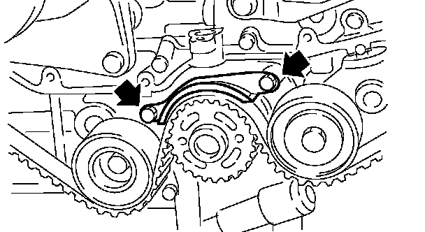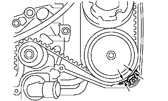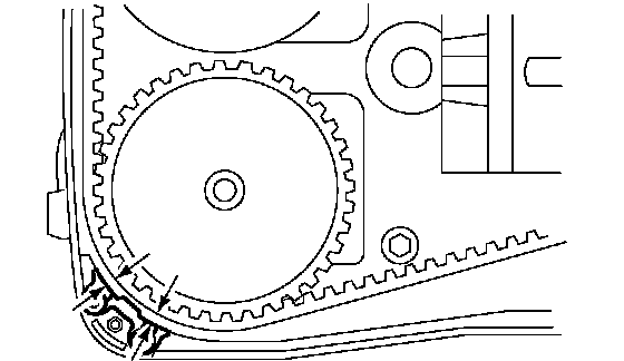 ^ Using white paint, put alignment and/or arrow marks on the timing belts in relation to the sprockets.