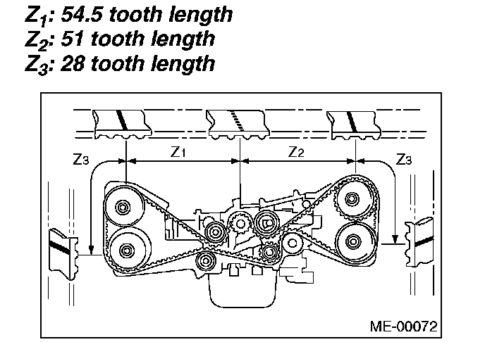 ^ Disengagement of more than three timing belt teeth may result in interference between the valve and piston.