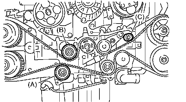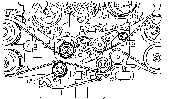 1. Remove the belt idler (B) and (c).