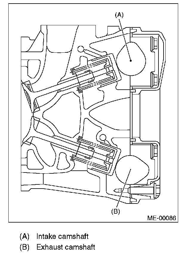 ^ Camshafts (LH) must be rotated from the "zero-lift" position to the position where the timing belt is to be installed at as small an angle as possible, in order to prevent mutual interference of intake and exhaust valve heads.
