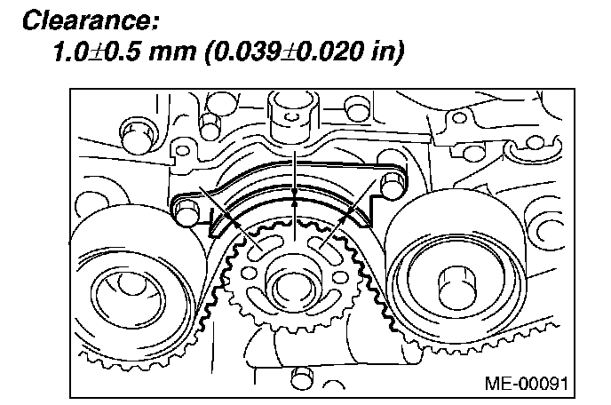 14. Check and adjust the clearance between timing belt and timing belt guide.