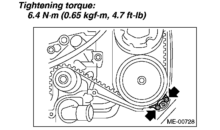 Tightening torque: 6.4 Nm (0.65 kgf-m, 4.7 ft. lbs.)