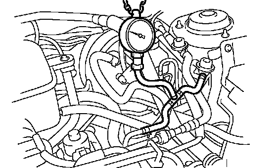 NOTE: The fuel pressure gauge registers 10 to 20 kPa (0.1 to 0.2 kgf/cm2, 1 to 3 psi) higher than standard values during high-altitude operations.