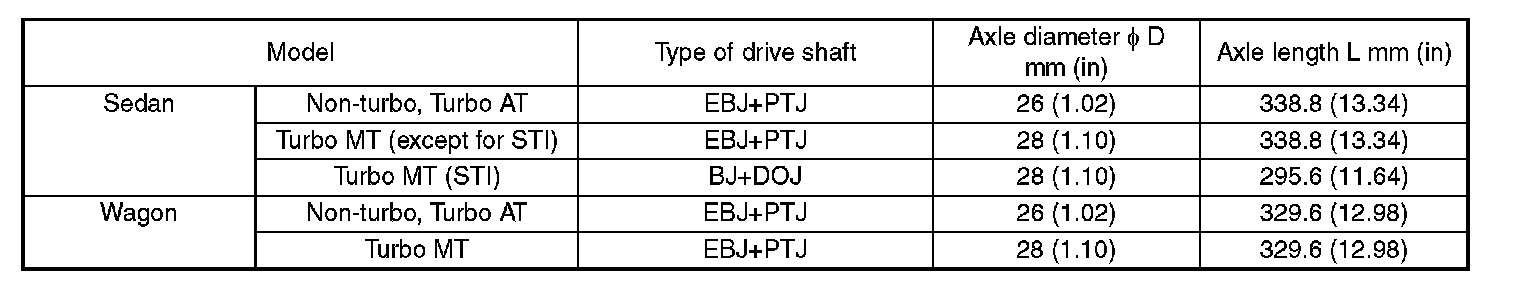 Front Drive Shaft Dimensions