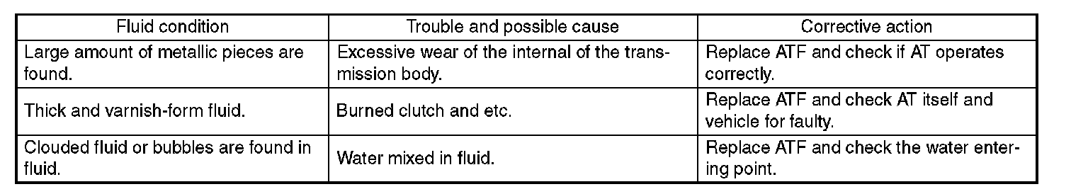 When replacing ATF, check the inside condition of the transmission body by inspecting the drained ATF.