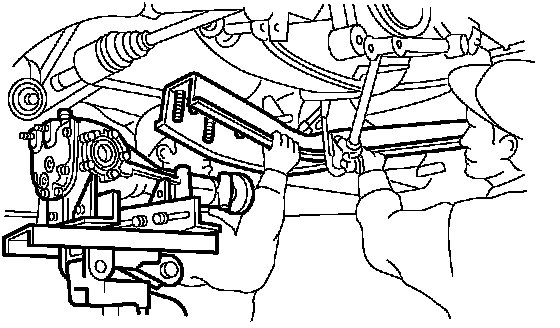 1. Position the differential front member on body by passing it under the parking brake cable and securing to rear differential.