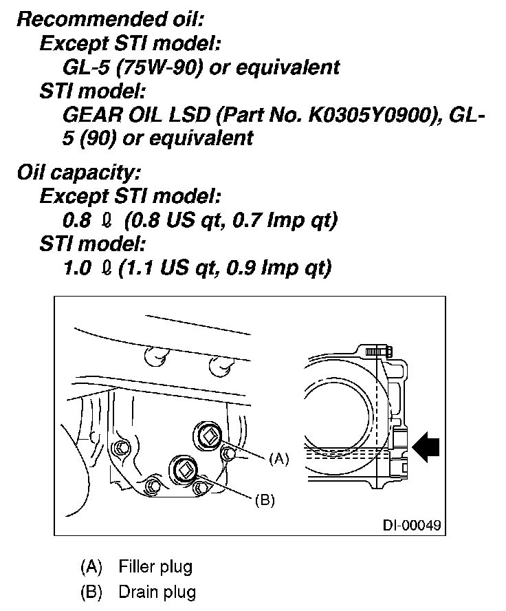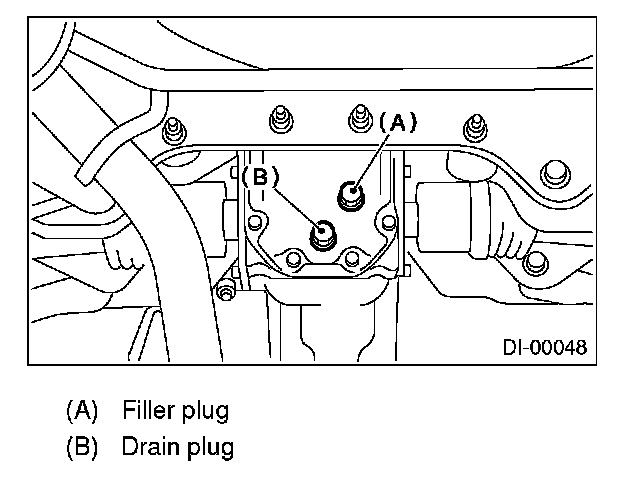 5. Fill the differential carrier with gear oil to the upper plug level.