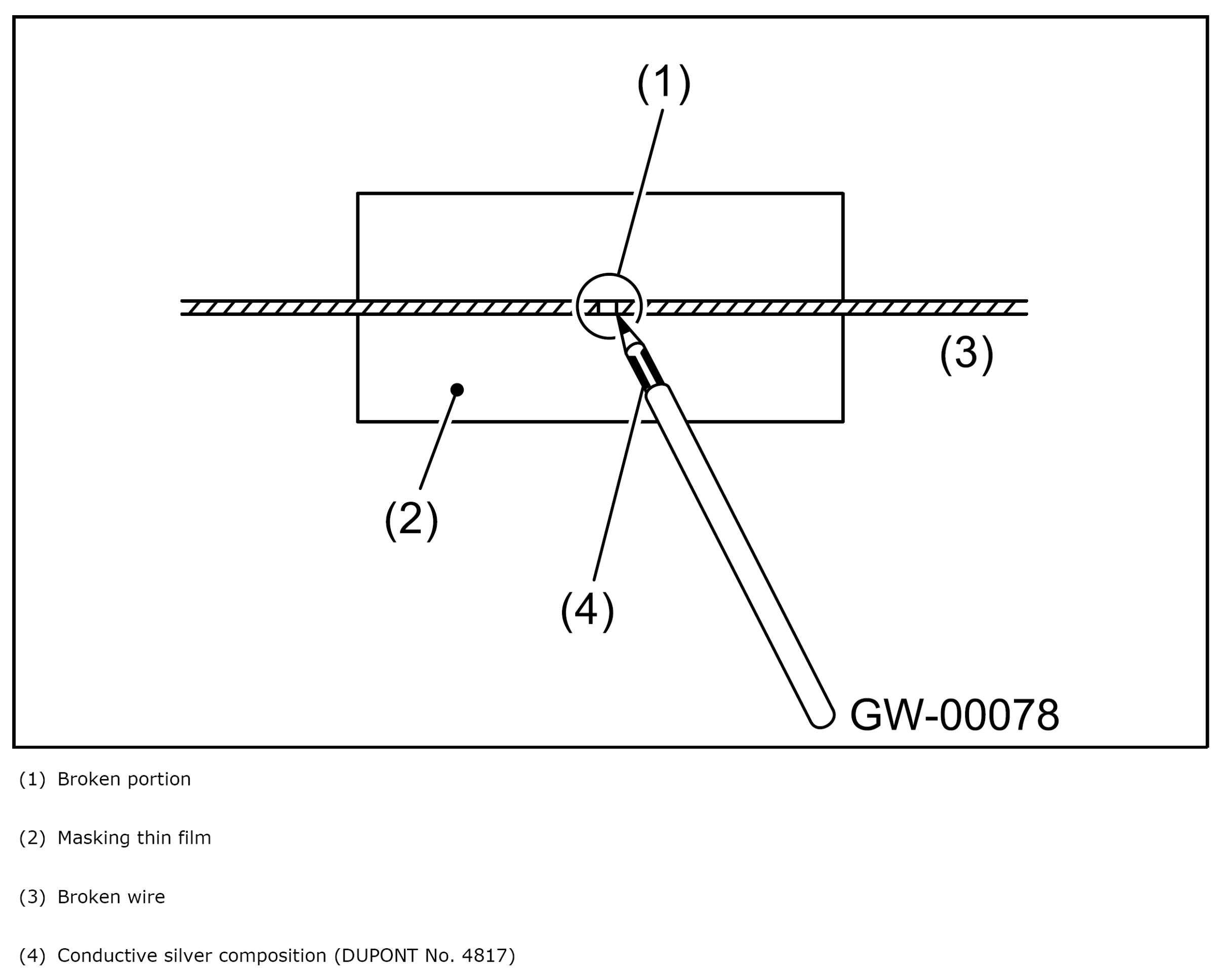 Apply conductive silver composition (DUPONT No.4817) to broken portion.