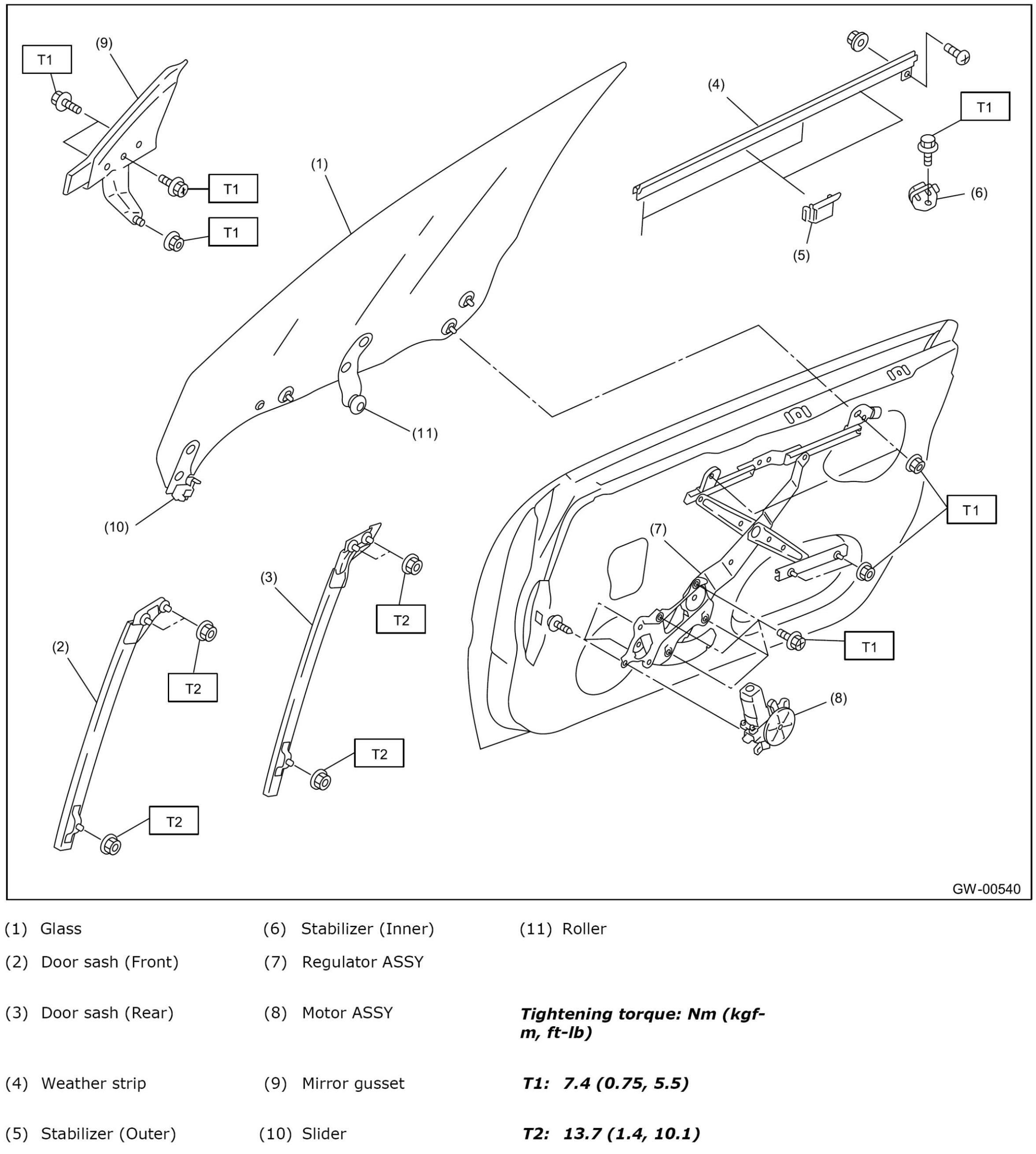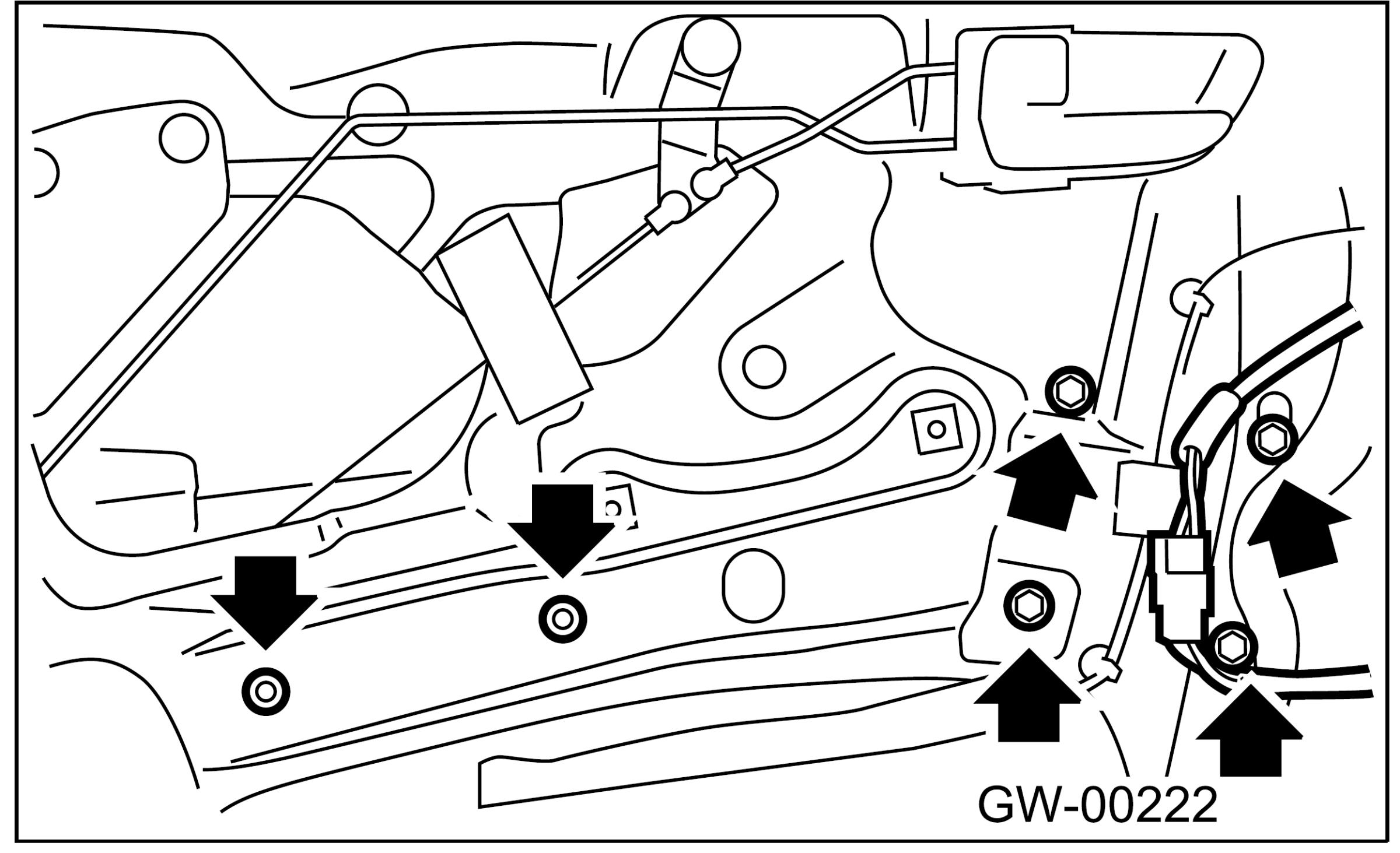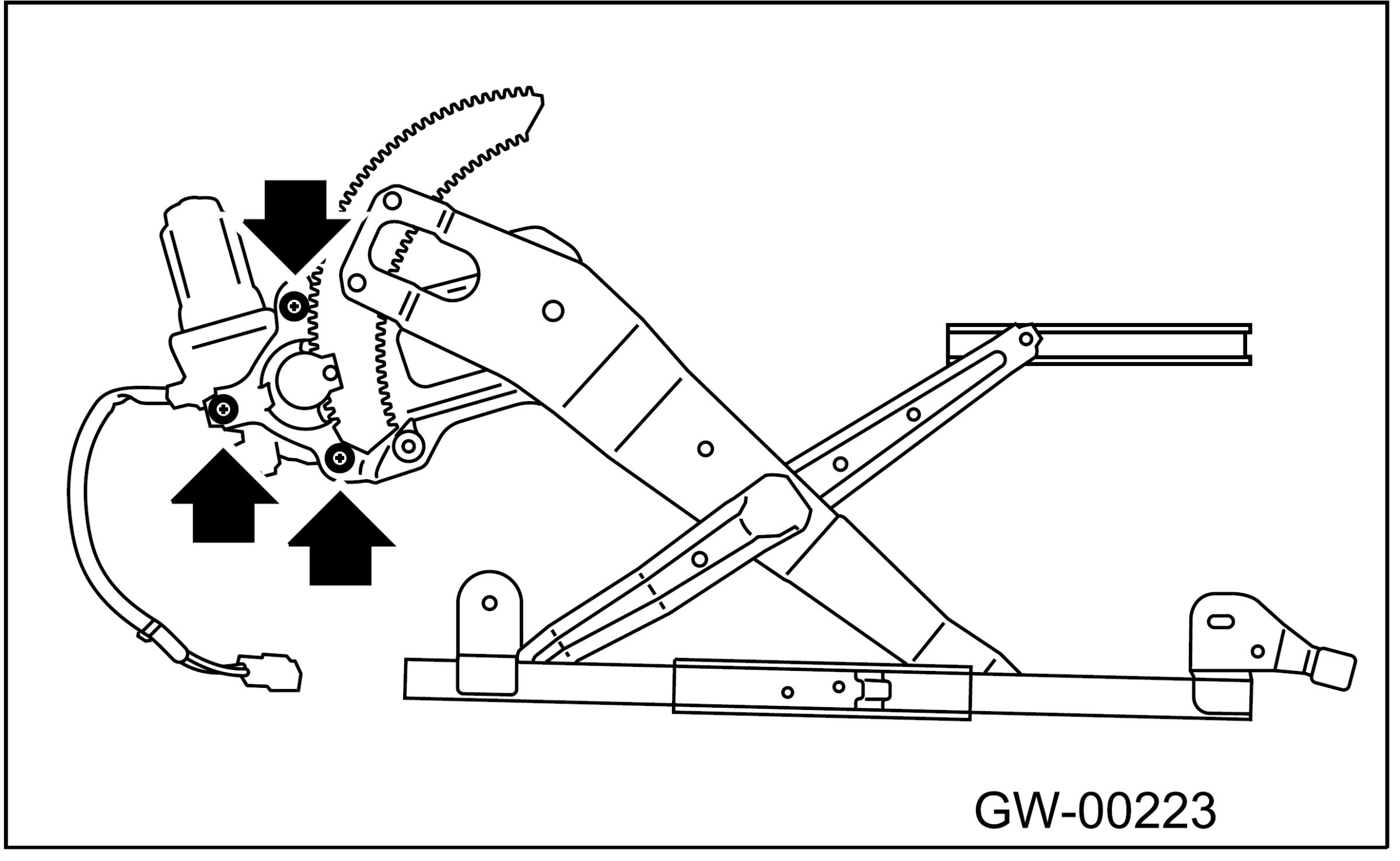 Loosen the four bolts and two nuts to remove the regulator assembly.