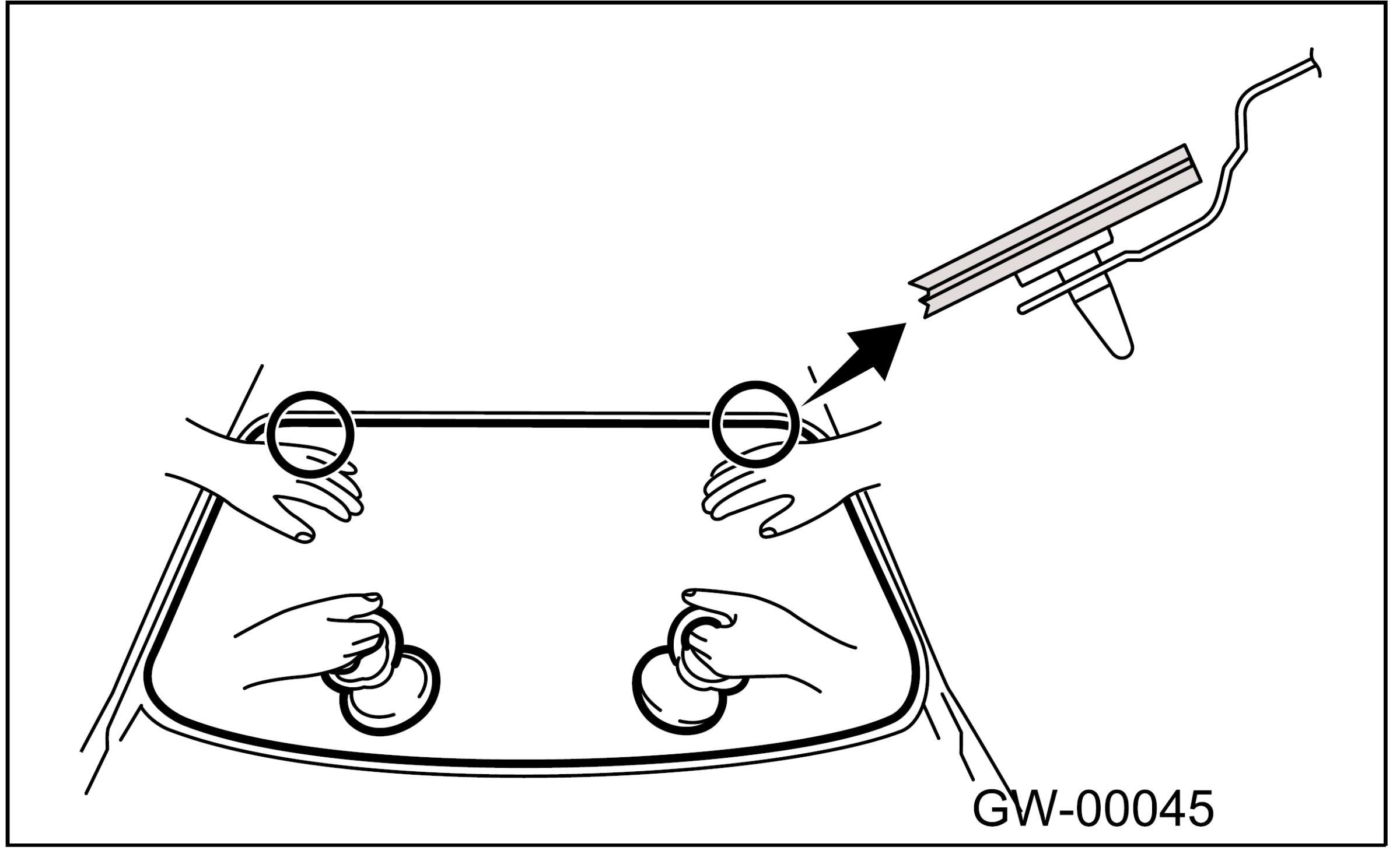 - For minimum drying time and time the vehicle must be left standing before driving after bonding, follow the instructions from adhesive manufacturer.