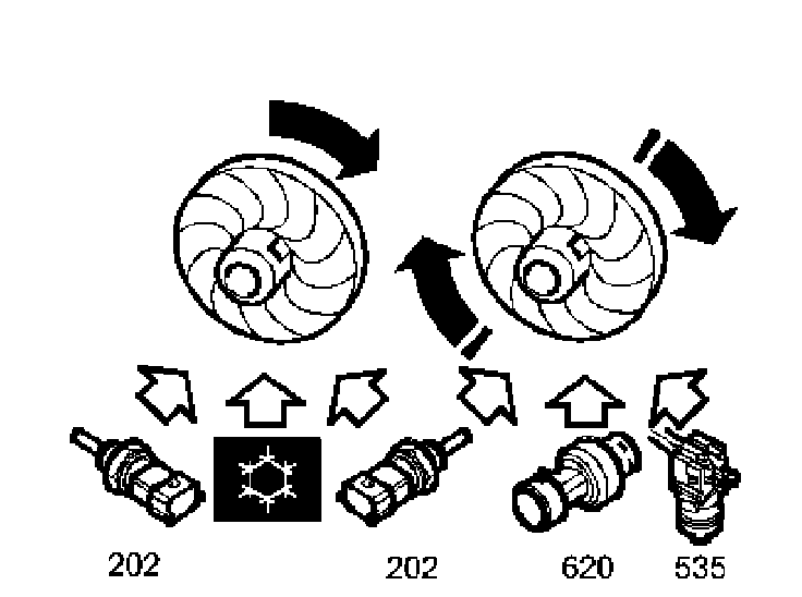 If the temperature signal is missing, the radiator fans will run constantly at full speed, i.e. stage 4.