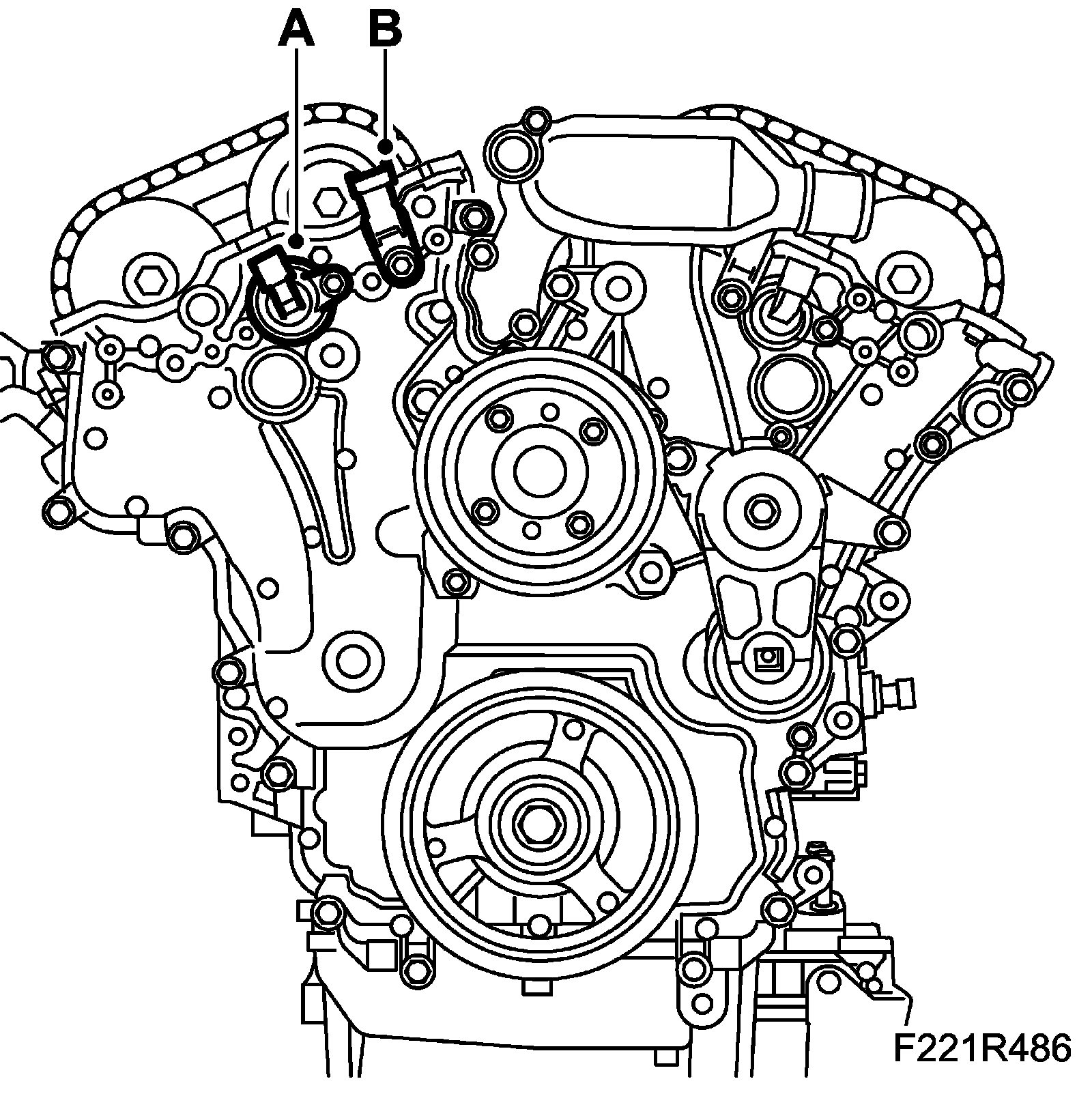 7. Fit the camshaft position sensor (555R) using a new gasket. (B)