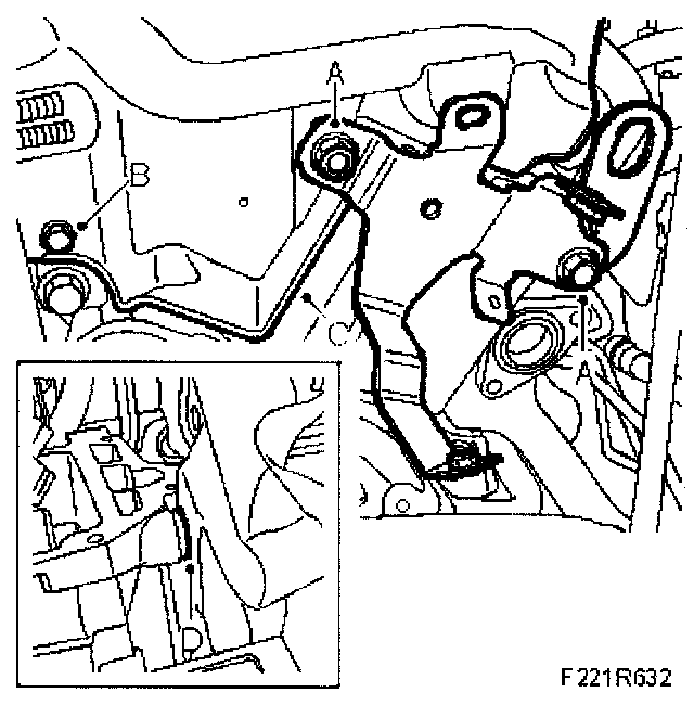20. Fit the front catalytic converter bracket (A) to the engine.