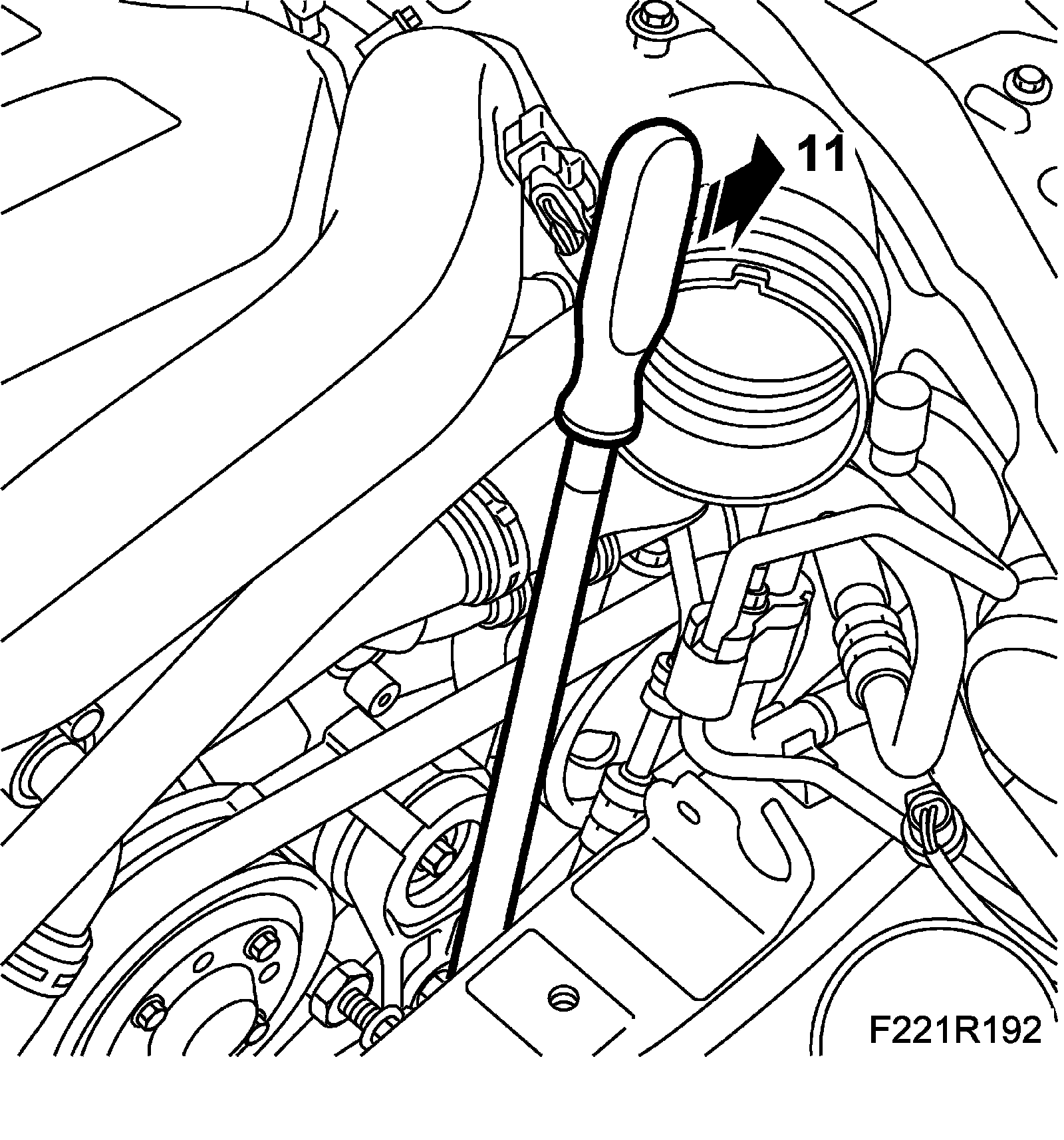 1. Position the belt, relieve the load on the belt tensioner and fit the belt. Start by fitting the belt on the belt tensioner.