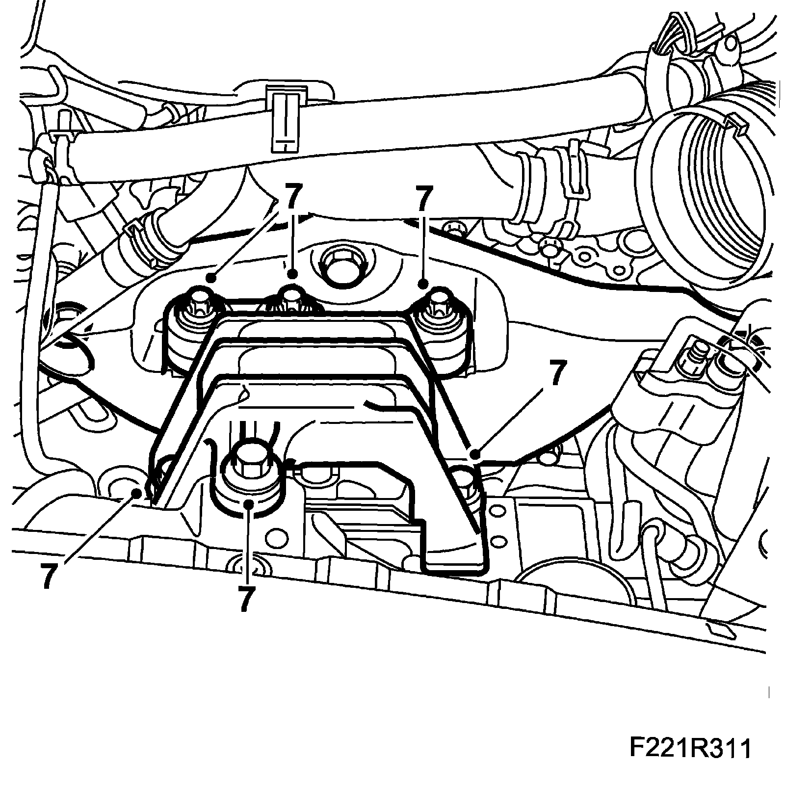 Tightening torque to engine mounting: 45 Nm + 90 degrees (33 lbf ft + 90 degrees)