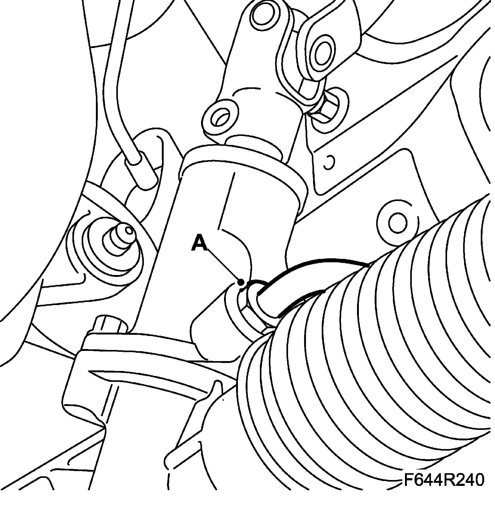 20. Place a receptacle under the car. Detach the return line (A) from the steering gear and plug the connection.