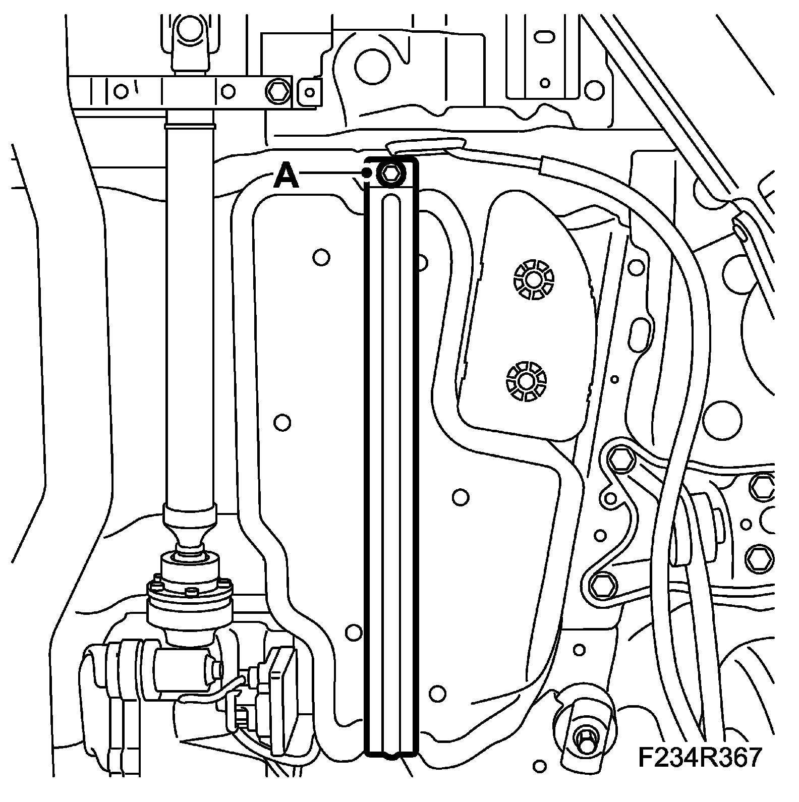 4. Remove the bolt (A) securing the left tank strap.