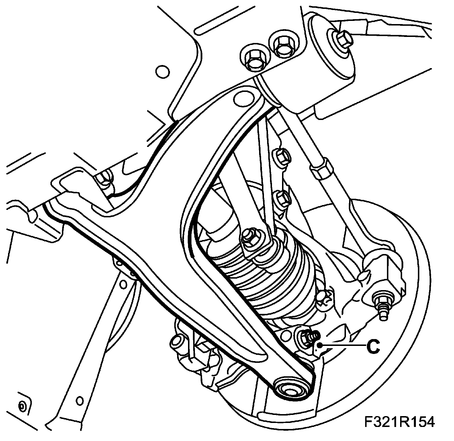 6. Remove the wedge and connect the ball joint to the steering swivel member with a nut and bolt (C). The pin must be visible above the steering swivel member before the bolt is fitted. Tighten the nut.