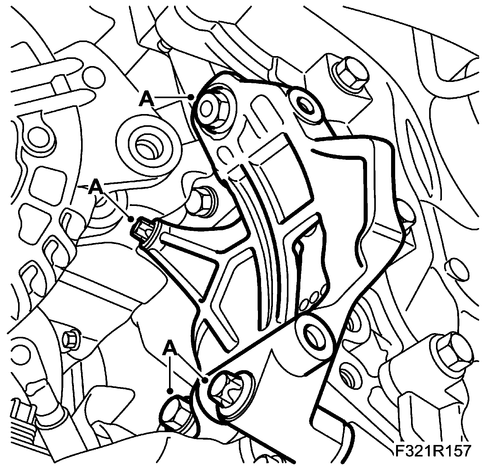 1. Move in the alternator. Fit the alternator bracket. (A)