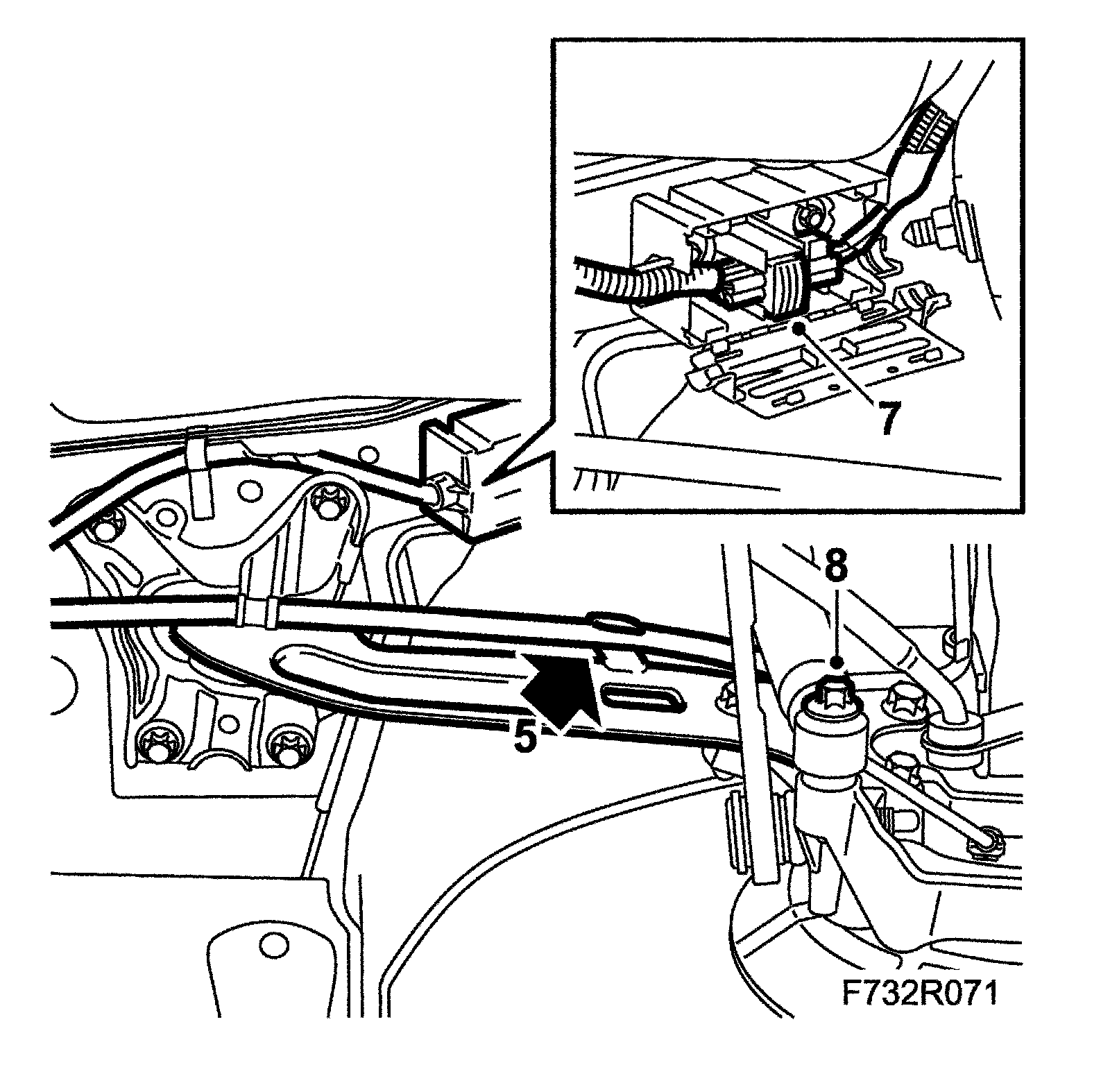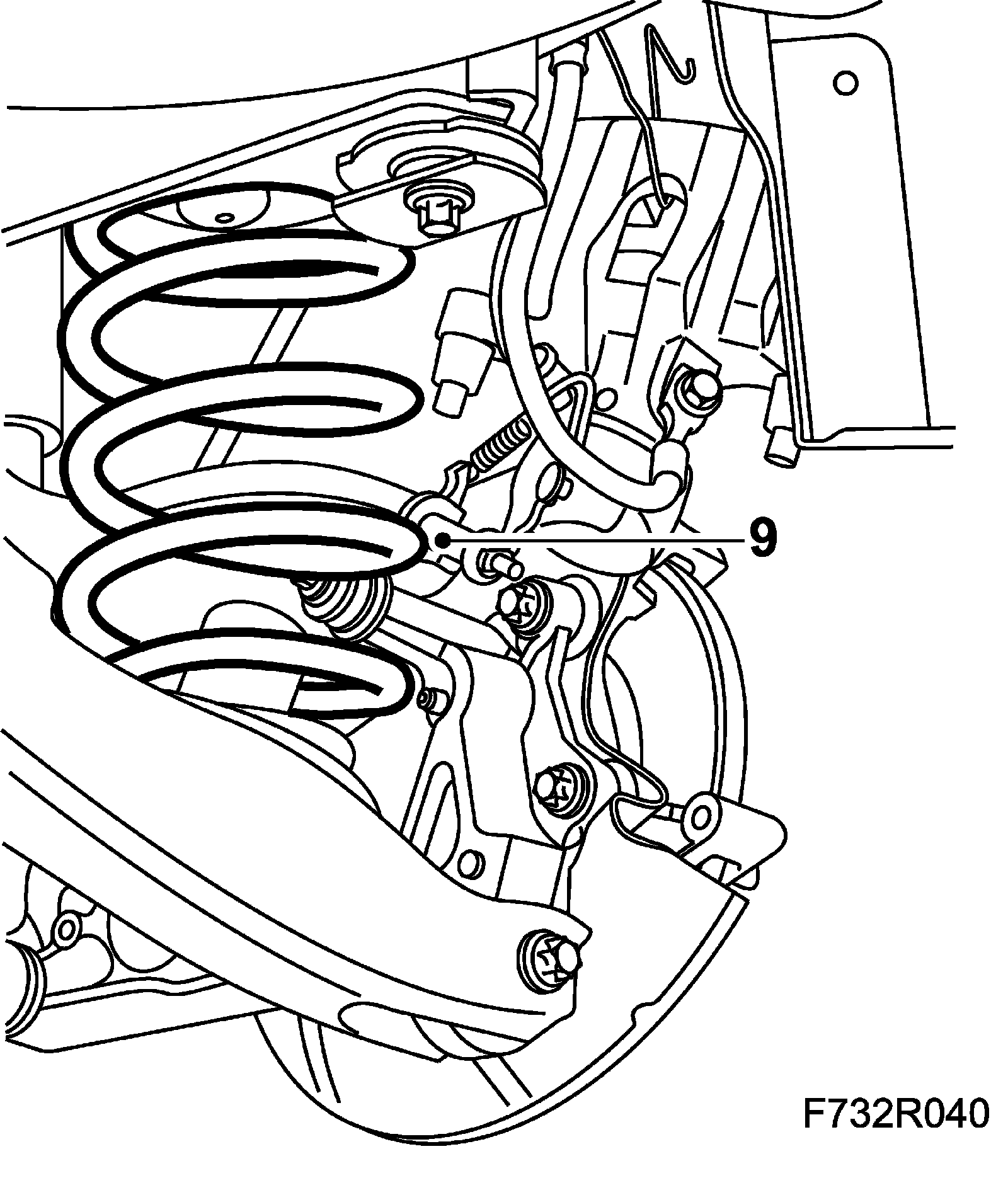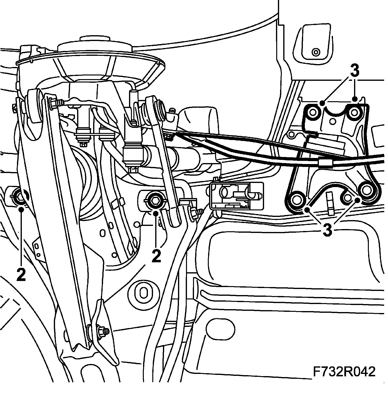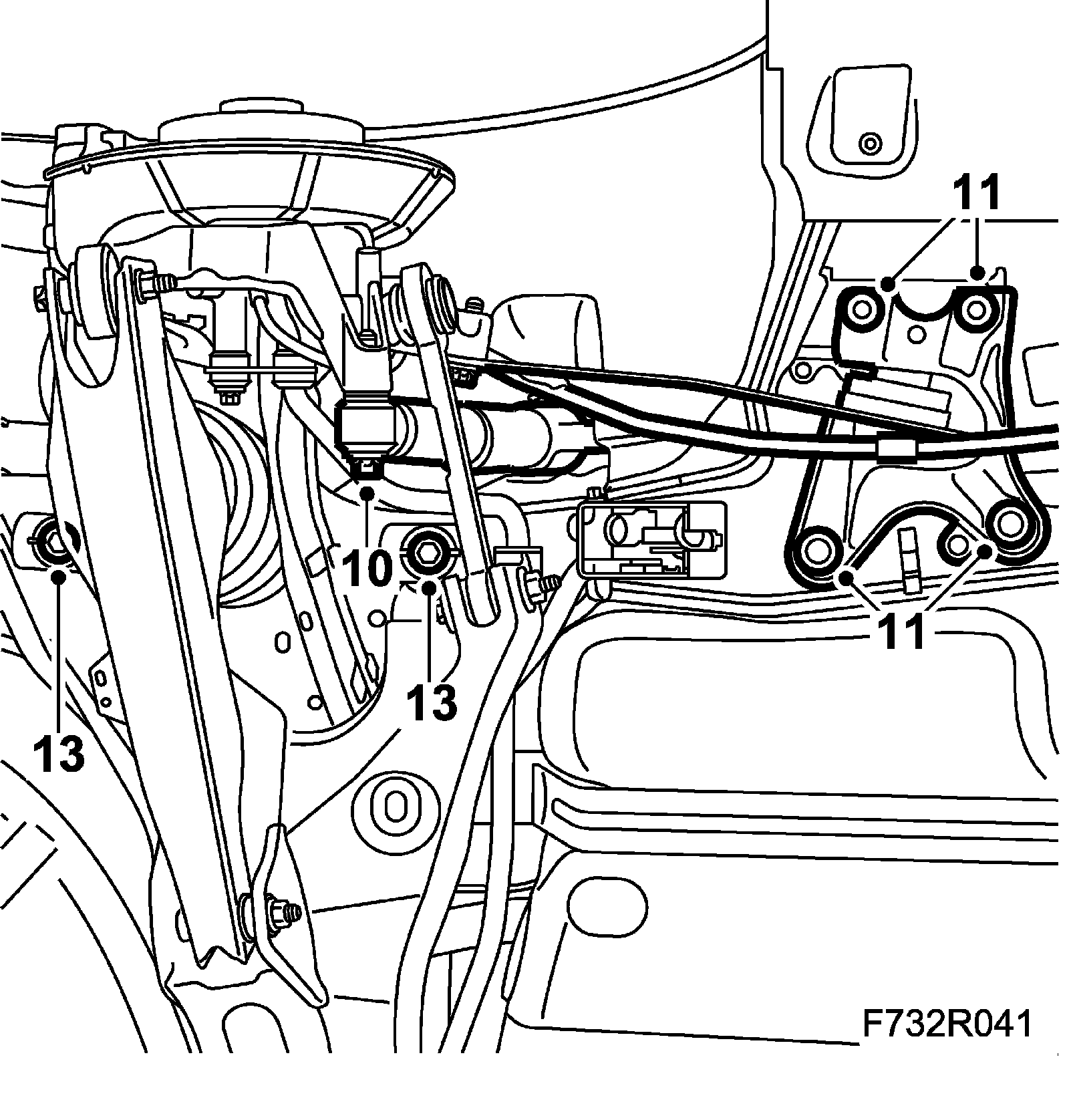15. Make sure that the parking brake cables and the cable network allow the longitudinal link to move freely and lower the trolley lift with the subframe.