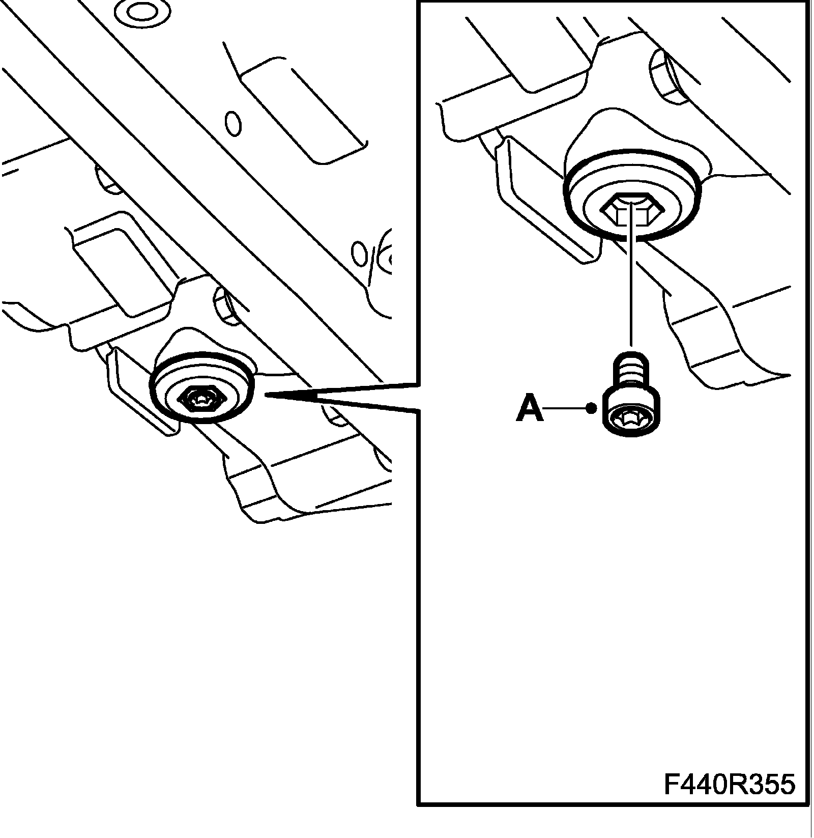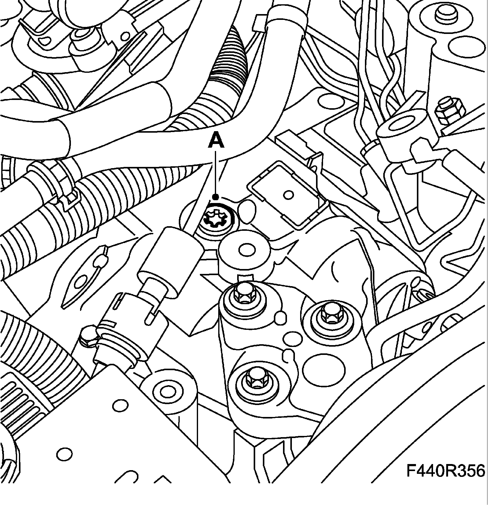 ^ Remove the two upper screws for the valve housing cover (A)