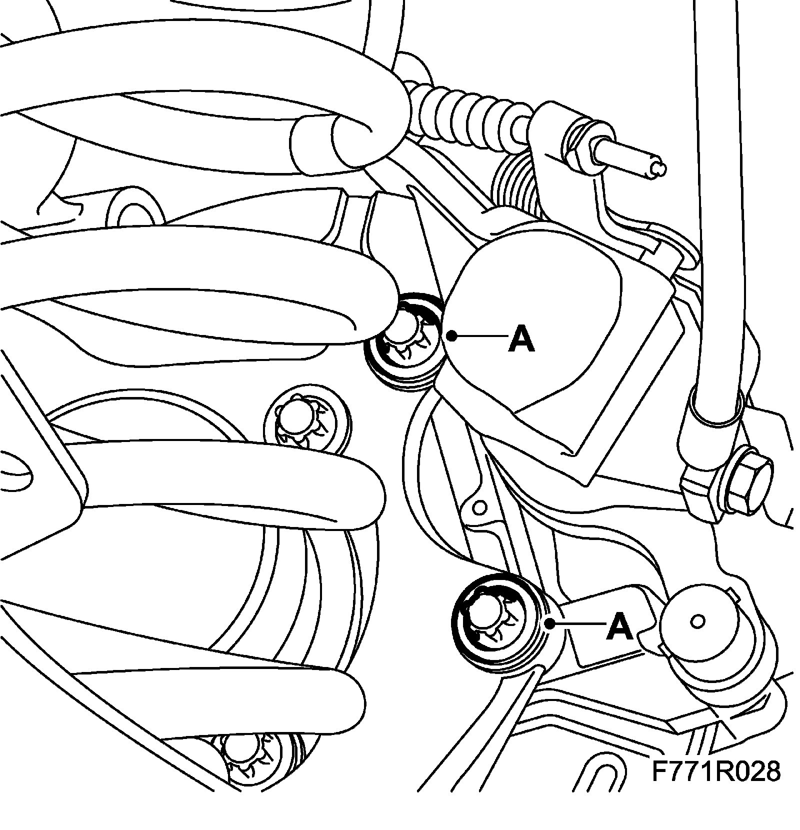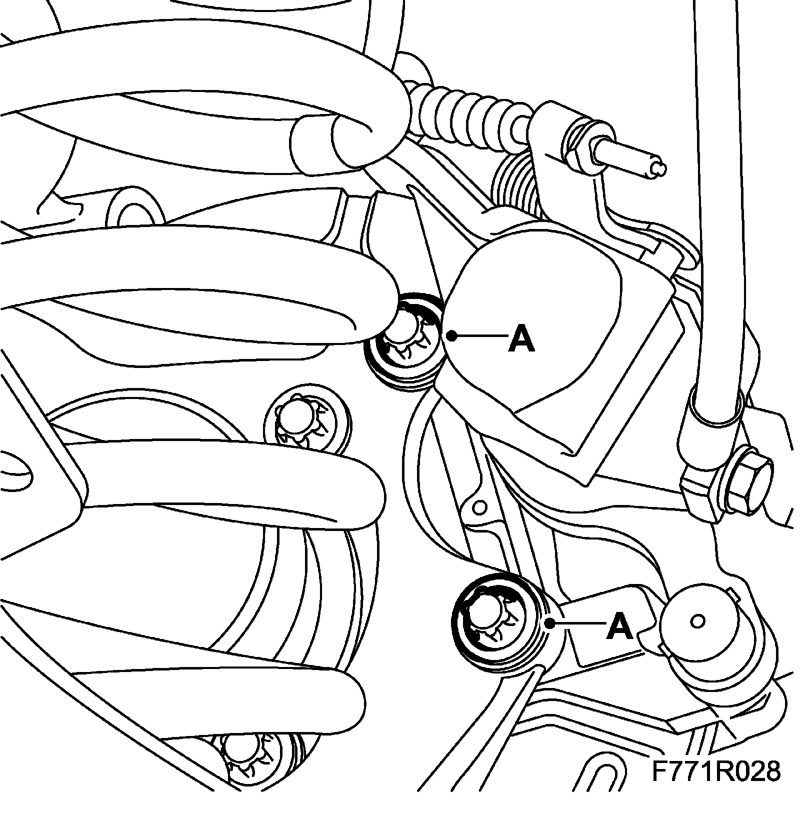 4. Remove the bush bolts (A) and move aside the anti-roll bar (B).