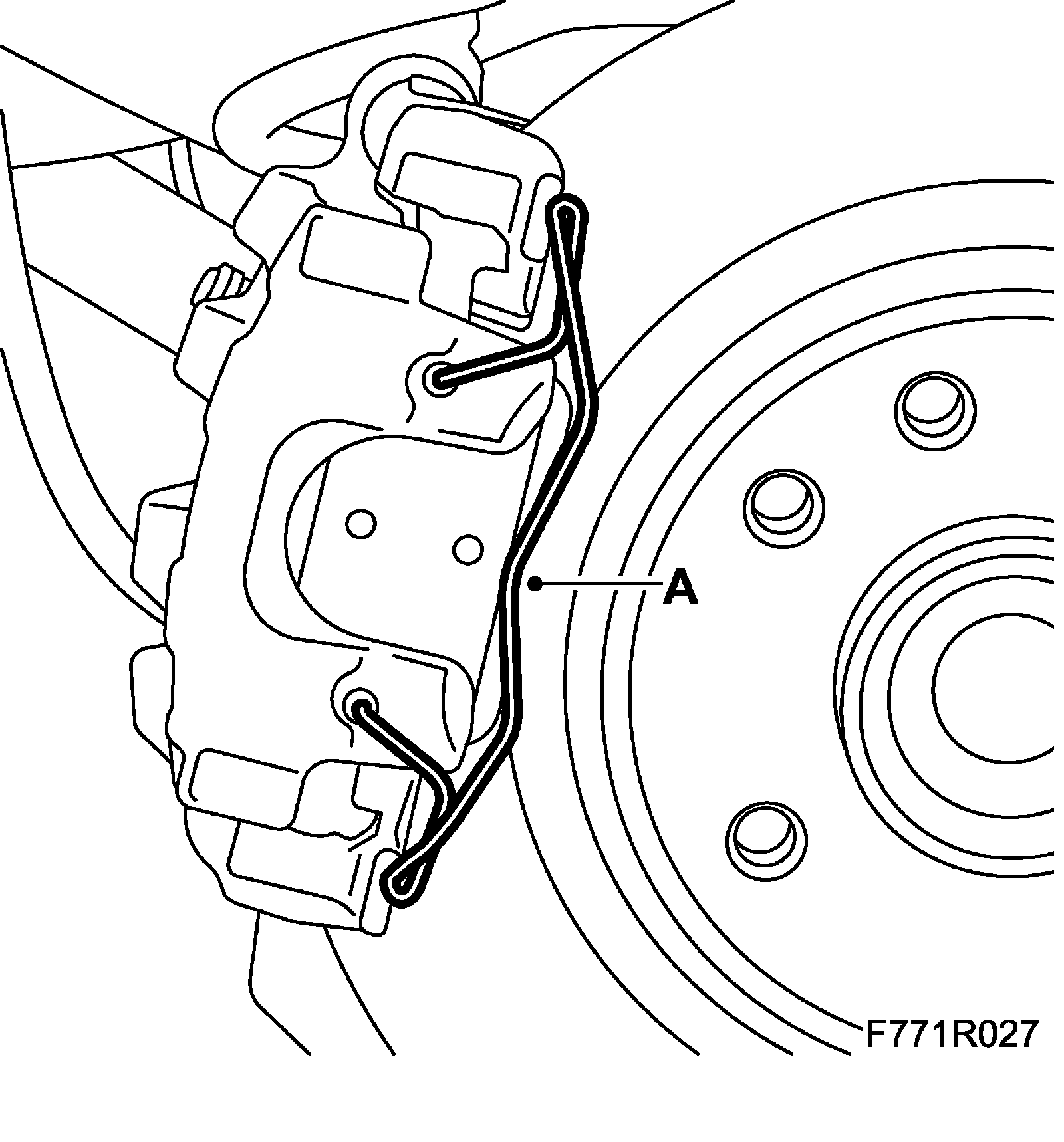 10. Fit the retaining spring (A) to the brake caliper.