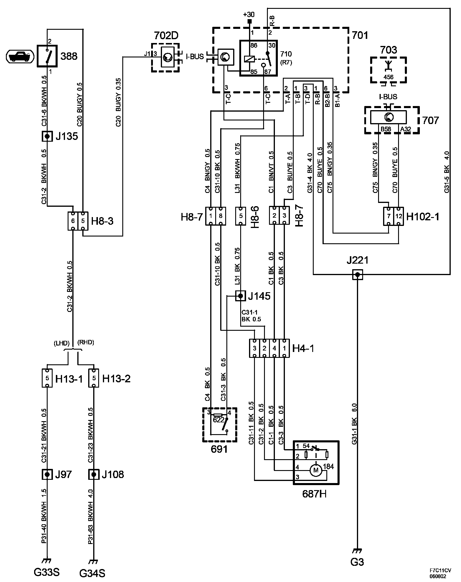 The diagrams for the power supplies that may be feeding this system (+30, +15, +54, +X, and +B) ) can be found at Power and Ground Distribution diagrams.