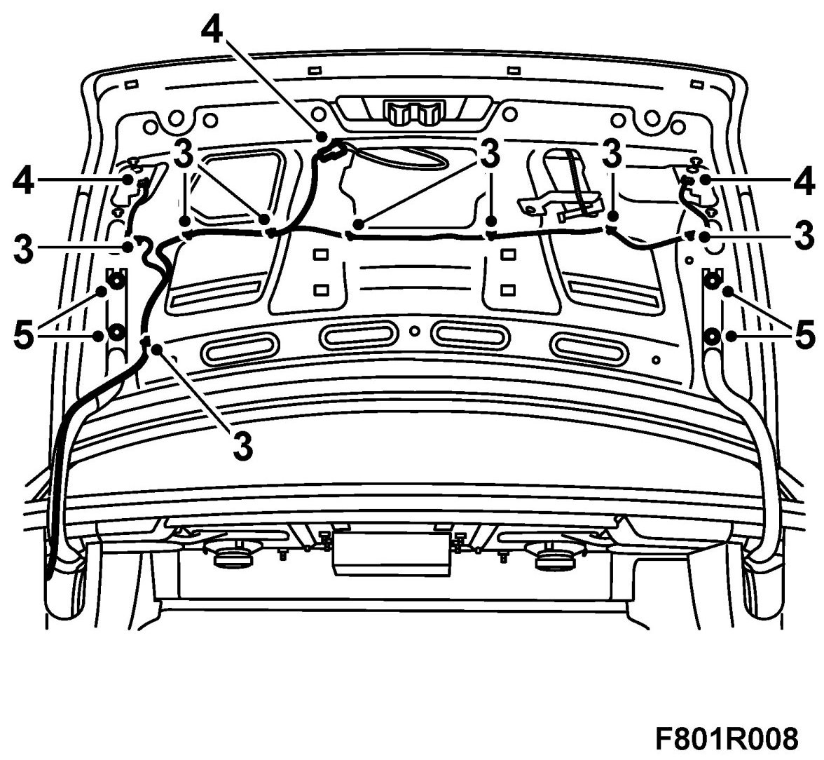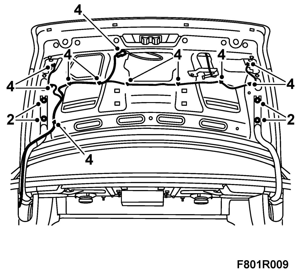 4. Fit the cable harness's clips and connect all connectors. Check the alignment of the bootlid.