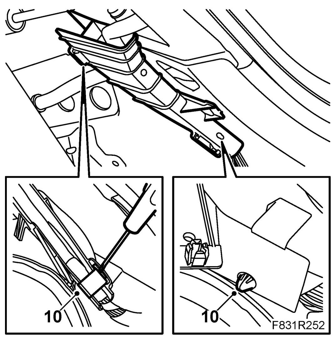 9. Bend down the headlining carefully to access the cable retainer.