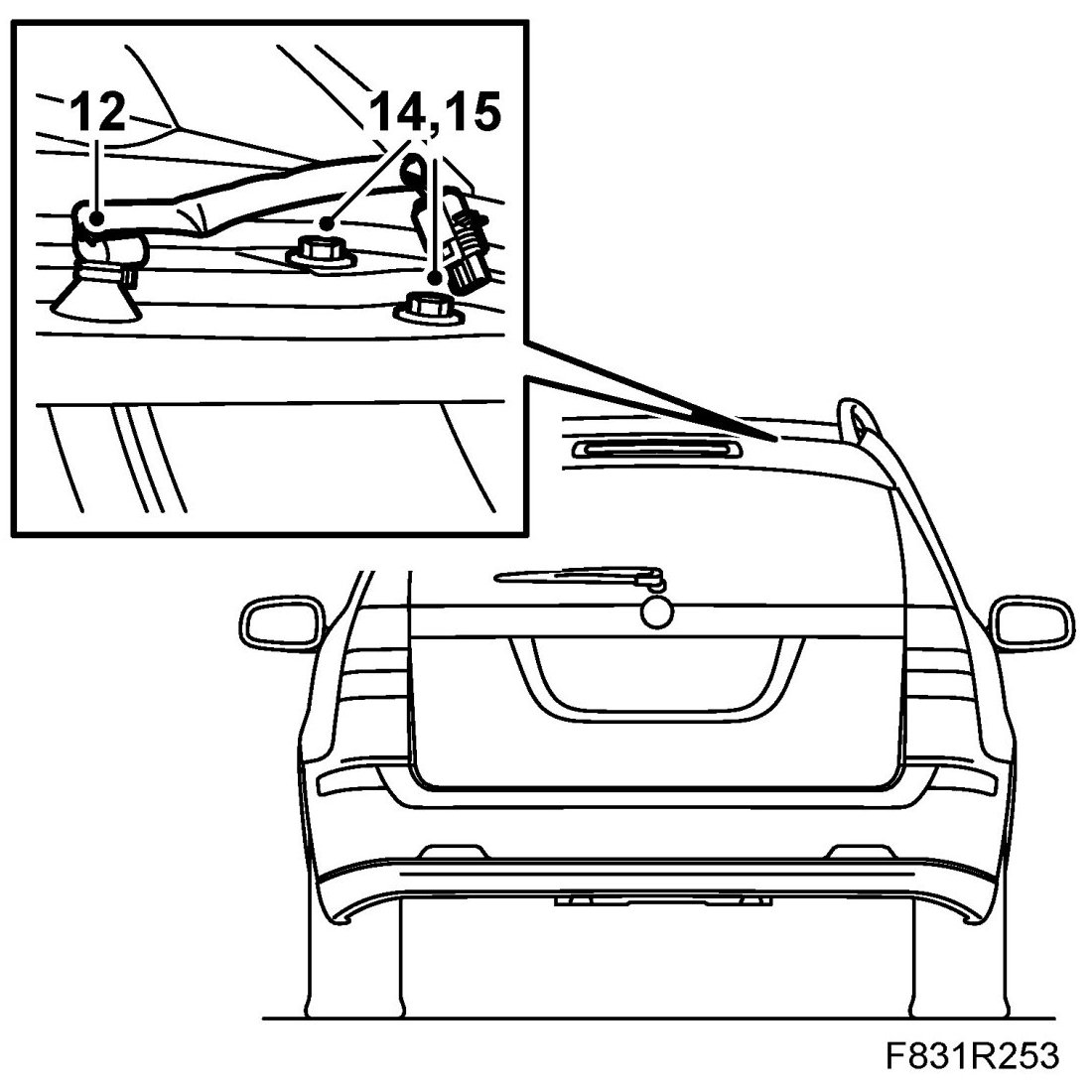 14. Mark the position of the tailgate by drawing around the bolts with a marker pen.
