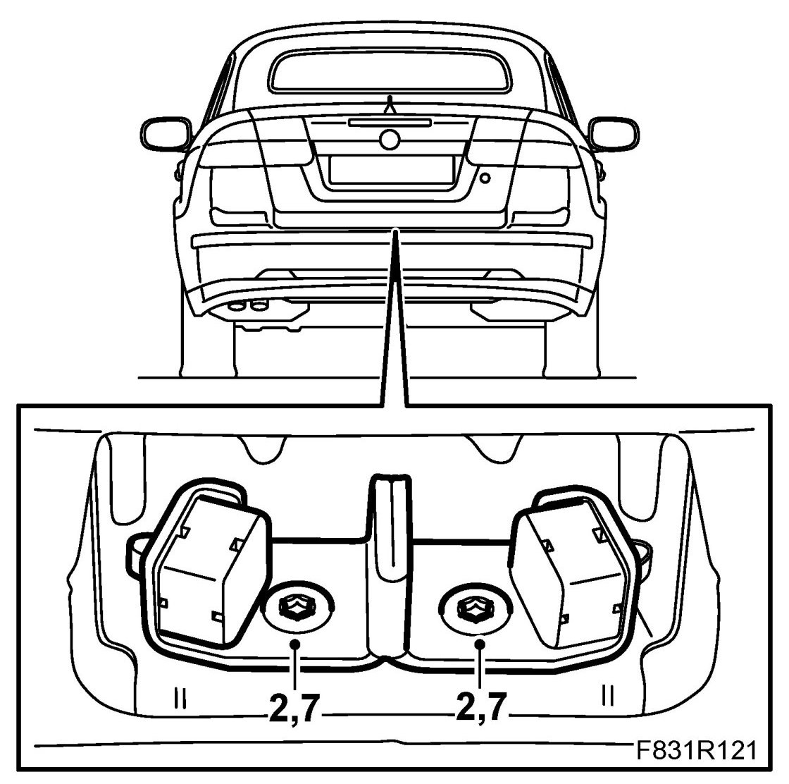 7. Fit the boot lid bolts.