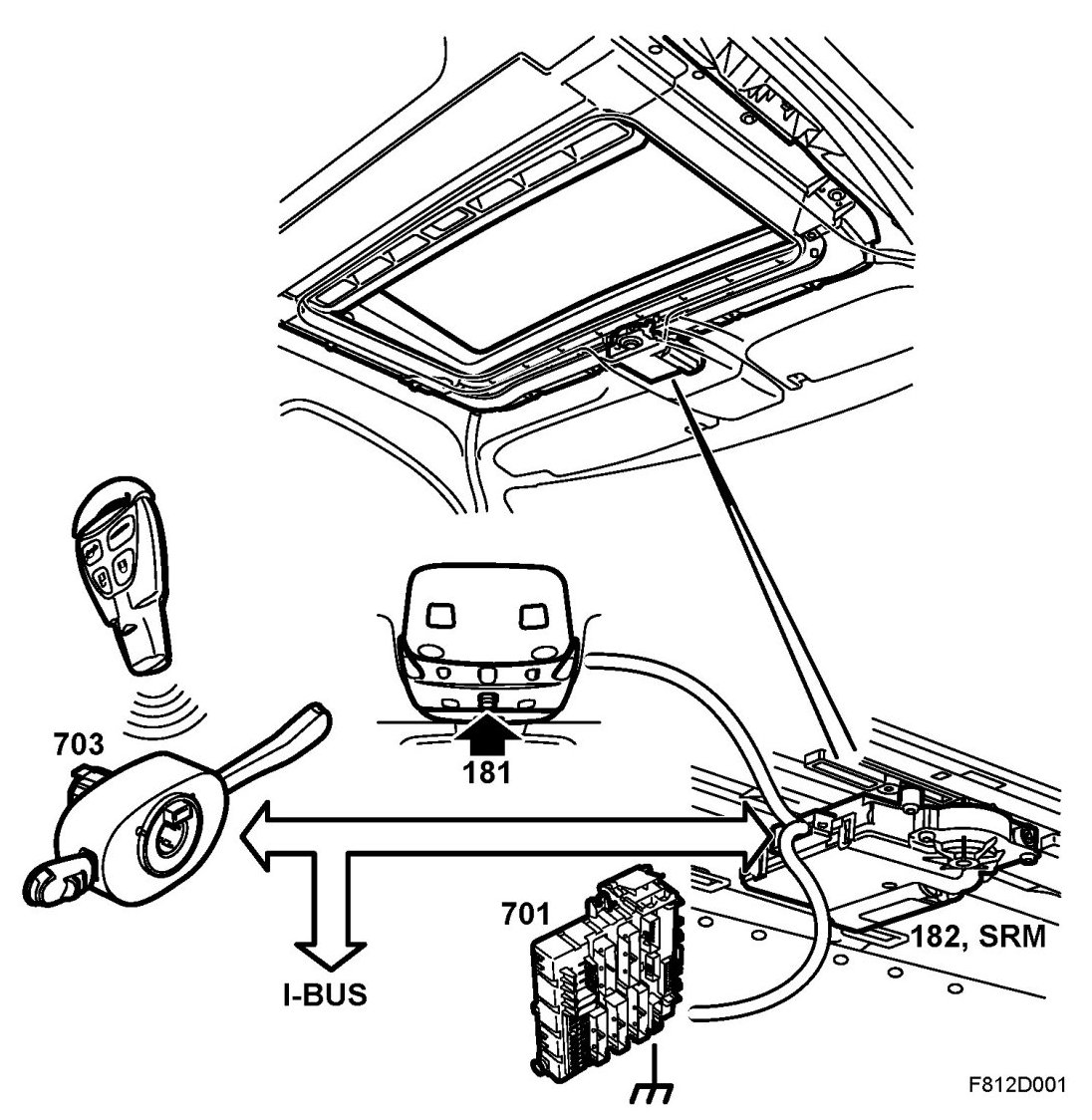 When the back of the sunroof is opened, a spring-operated wind deflector on the front edge is lifted up. When closing, the sunroof pushes down the arms of the wind deflector, which folds down. Opening of the sunroof takes places by means of a 5-position or 3-position switch located in the roof console. The sunroof assembly is drained using four drainage hoses.