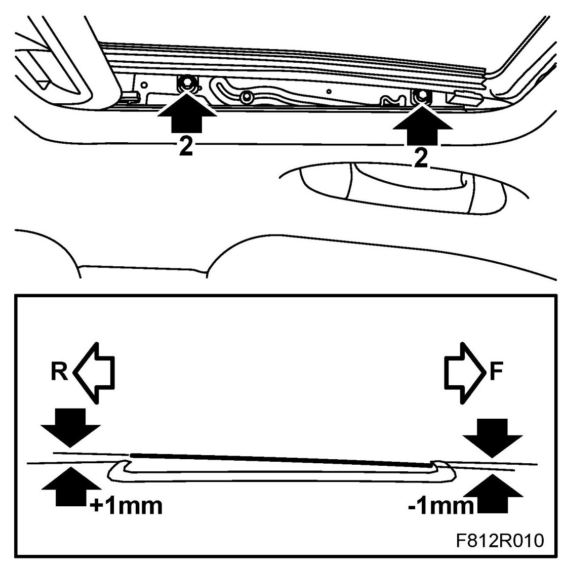 2. Attach the glass hatch's securing bolts and adjust the glass hatch's front and back edges so that the edges are level with the edges of the roof.