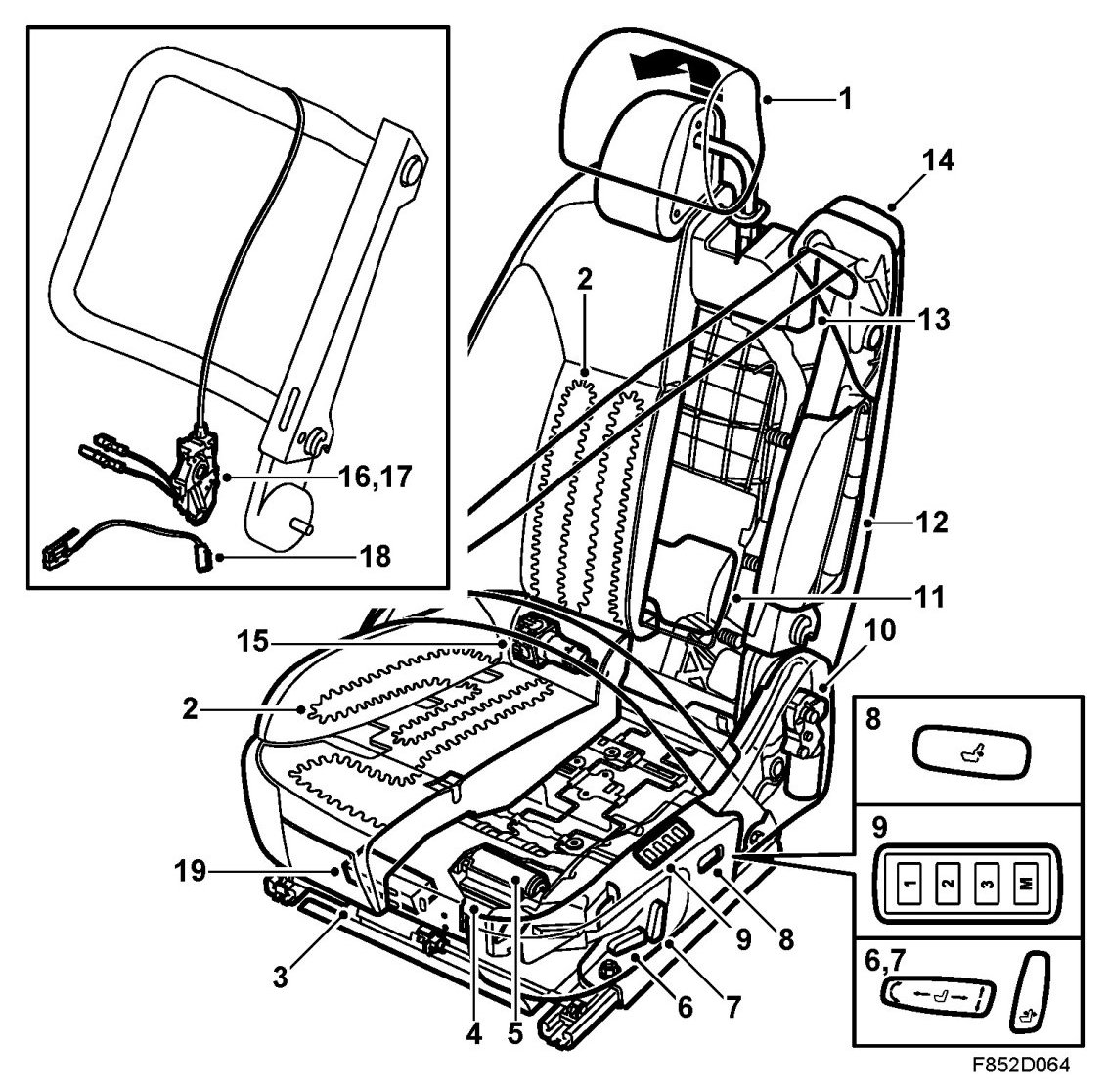 - Position sensor, tilt adjustment, electrically operated driver's seat with memory (357Df)