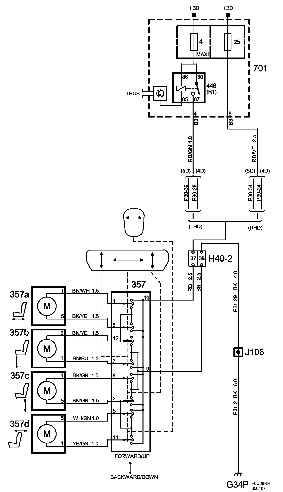 The diagrams for the power supplies that may be feeding this system (+30, +15, +54, +X, and +B) ) can be found at Power and Ground Distribution diagrams.