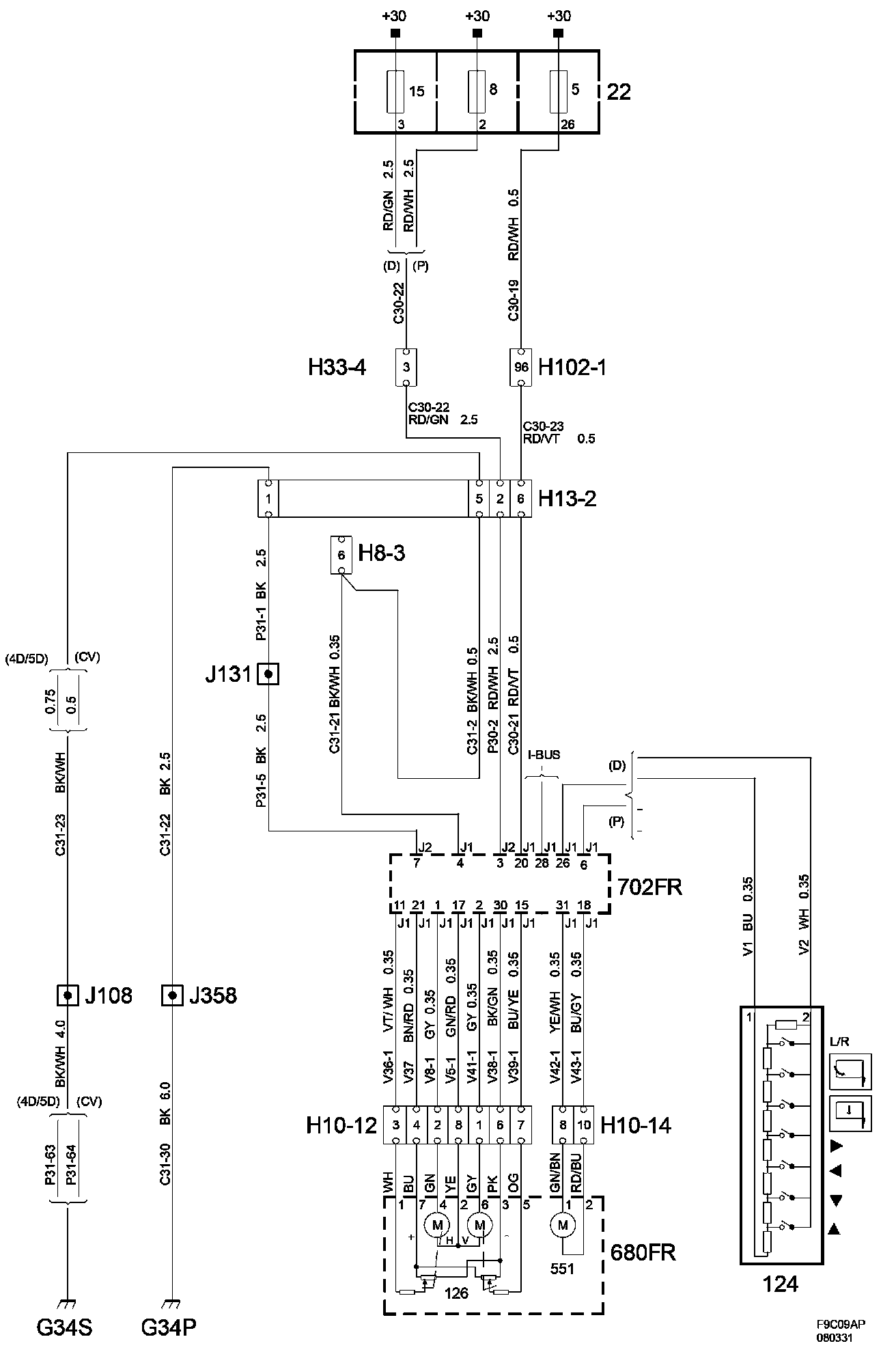 The diagrams for the power supplies that may be feeding this system (+30, +15, +54, +X, and +B) ) can be found at Power and Ground Distribution diagrams.