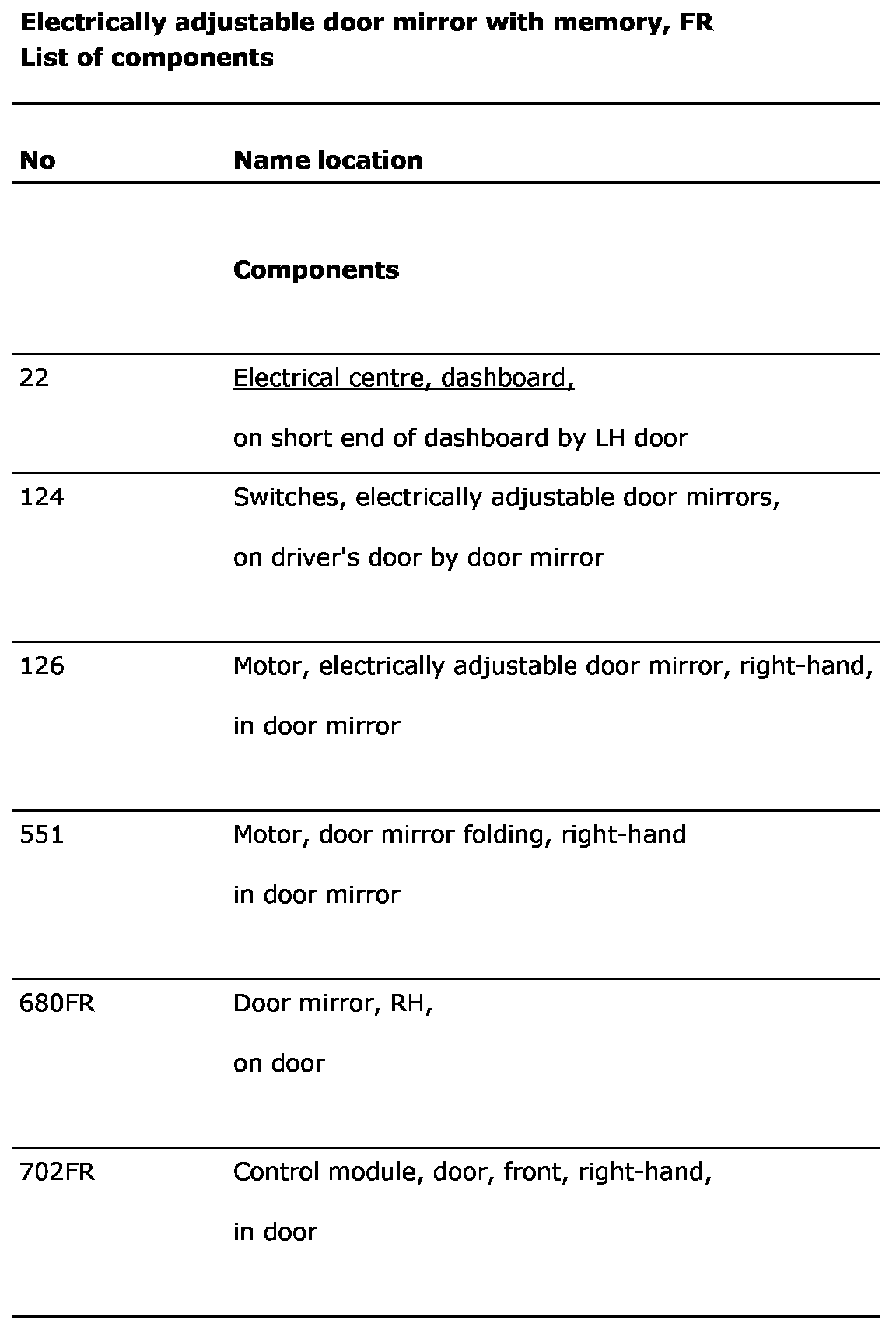 Electrically Adjustable Door Mirror With Memory, FR
