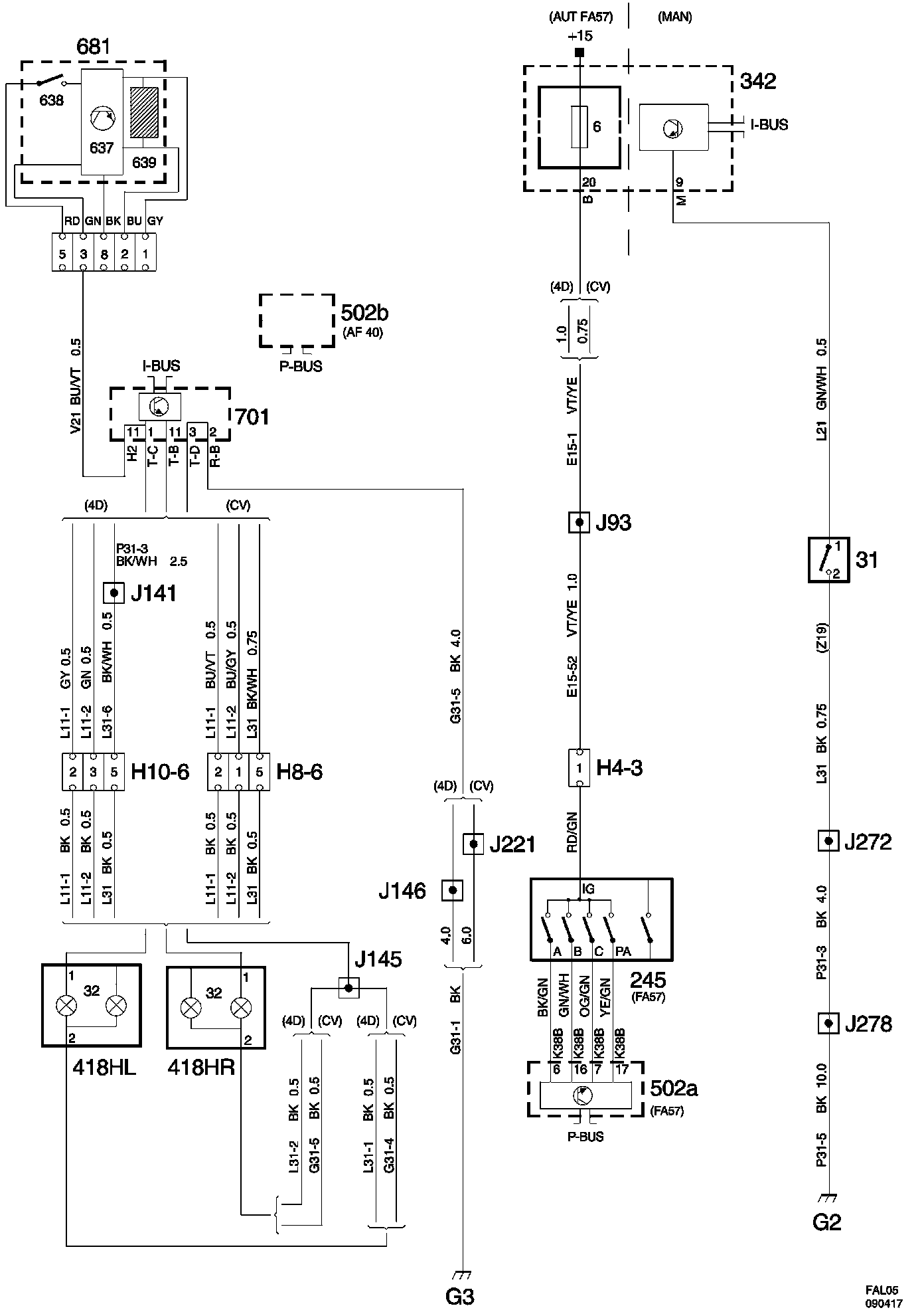 The diagrams for the power supplies that may be feeding this system (+30, +15, +54, +X, and +B) ) can be found at Power and Ground Distribution diagrams.