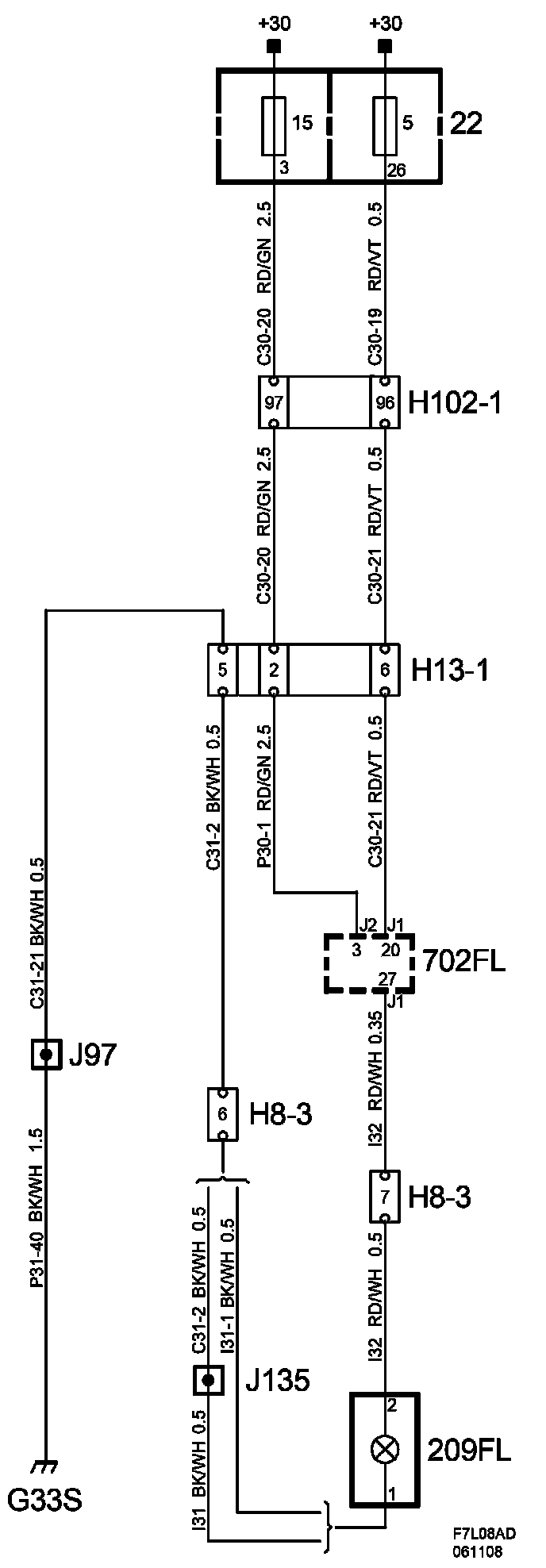 The diagrams for the power supplies that may be feeding this system (+30, +15, +54, +X, and +B) ) can be found at Power and Ground Distribution diagrams.