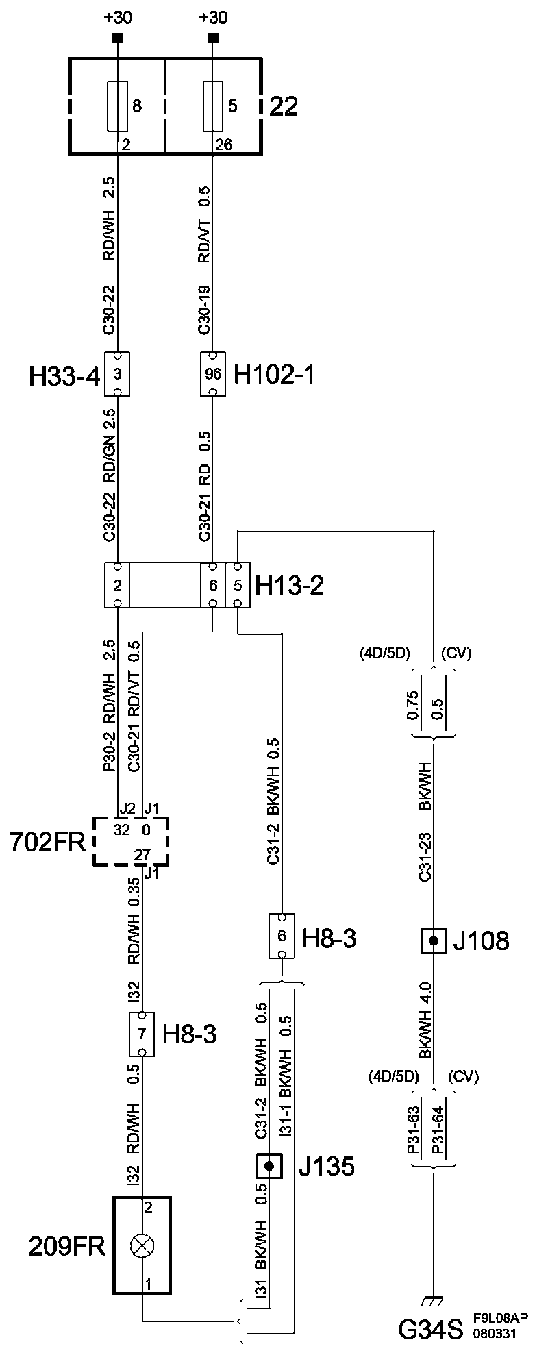 The diagrams for the power supplies that may be feeding this system (+30, +15, +54, +X, and +B) ) can be found at Power and Ground Distribution diagrams.