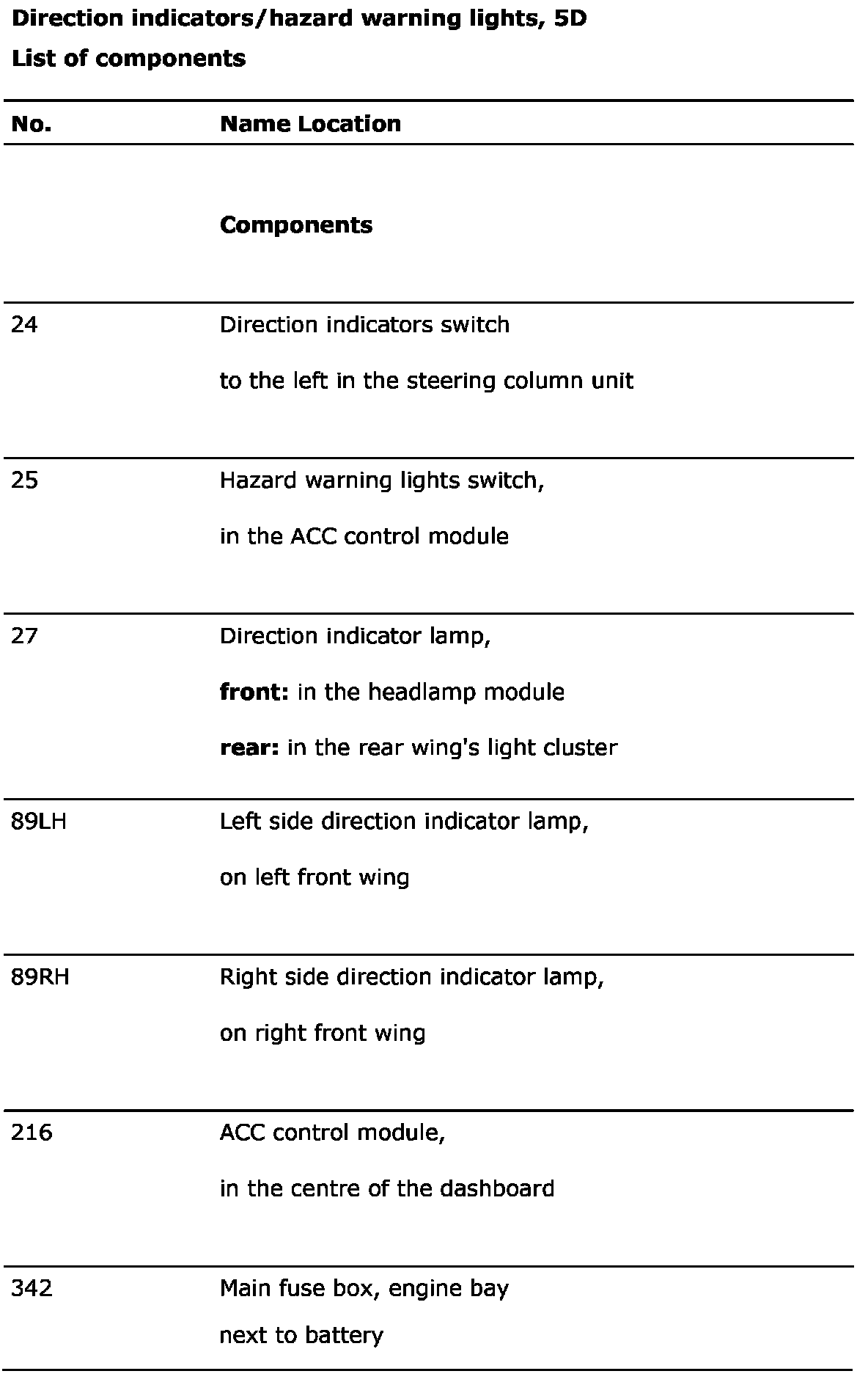 Direction Indicators/Hazard Warning Lights, 5D