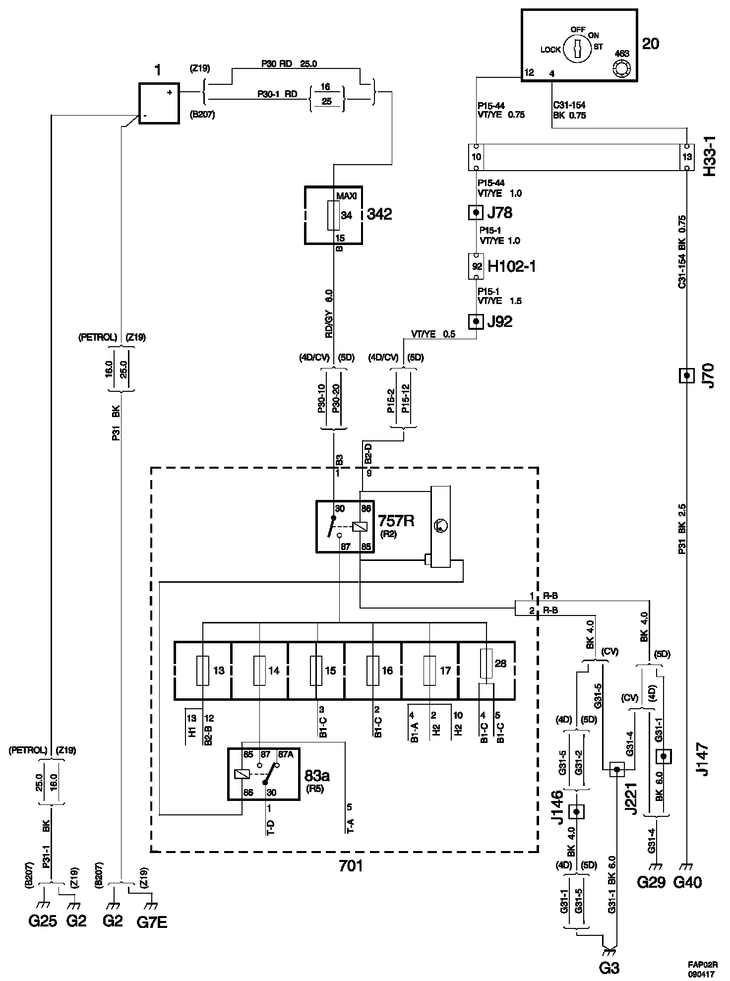 Power Supply +15, Main Fuse Box In the Luggage Compartment