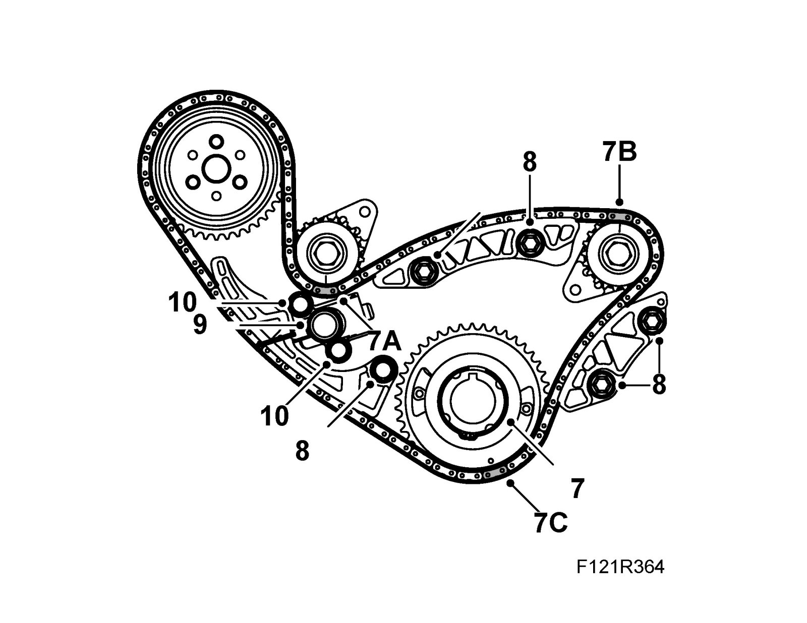 7.C. The silver-colored link must be fitted to crankshaft sprocket.