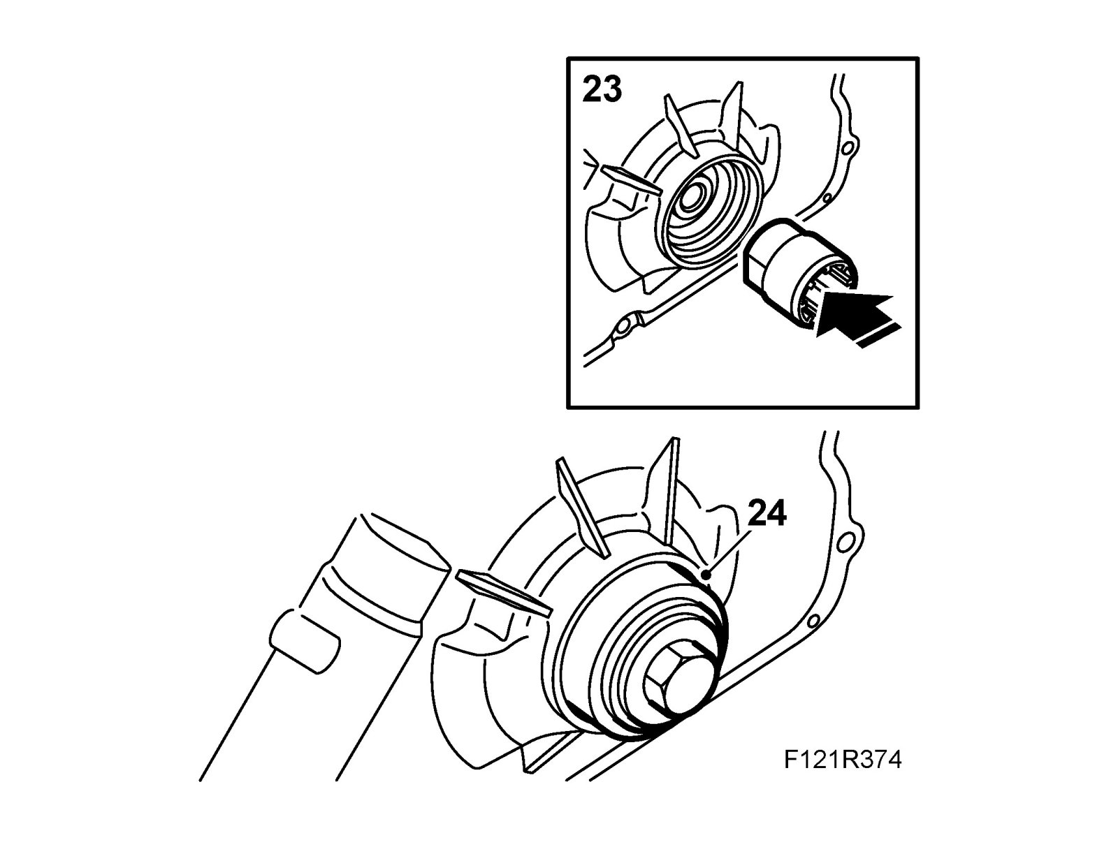 22. Fit the timing cover with a new gasket.