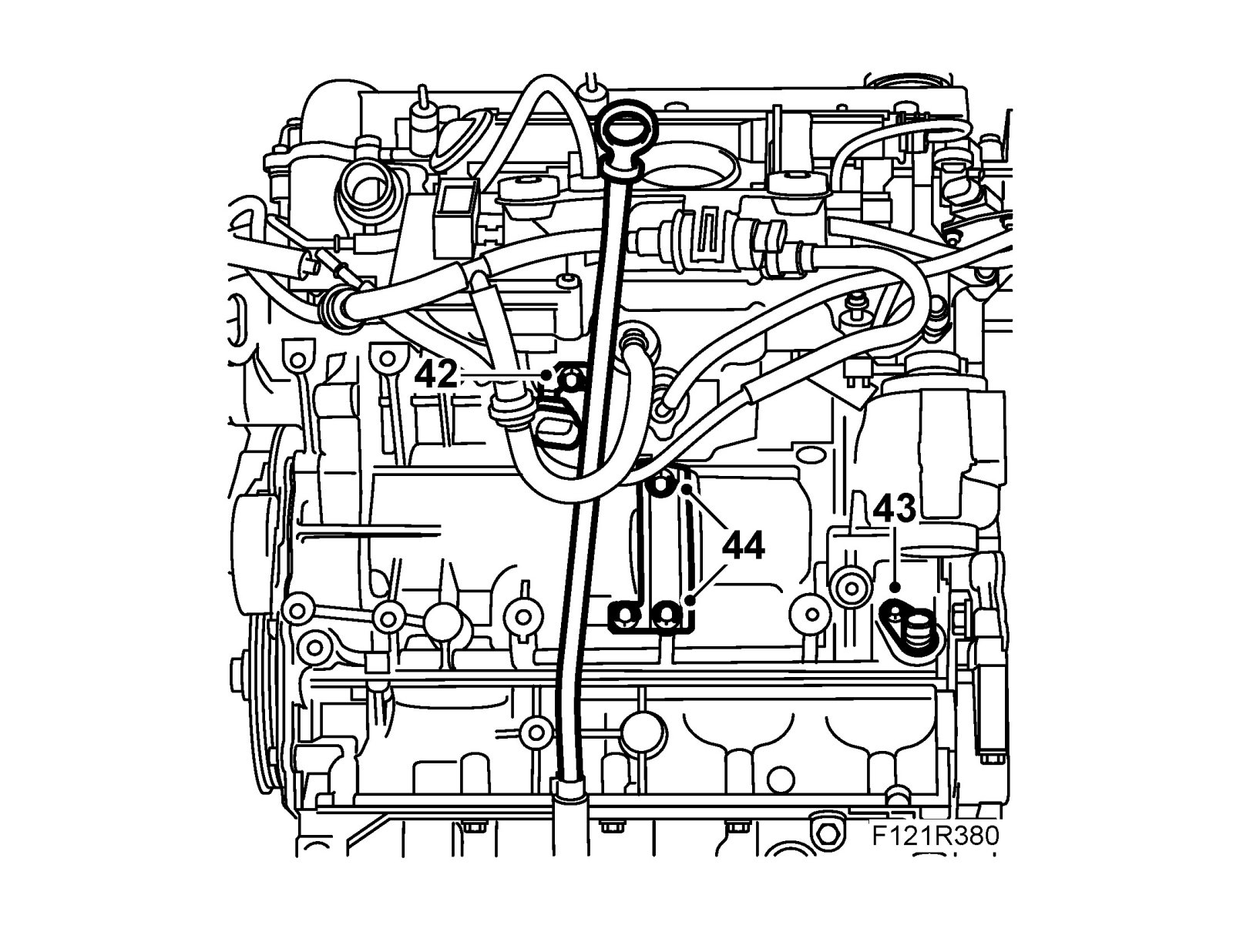 42. Fit the bolt to the dipstick tube.